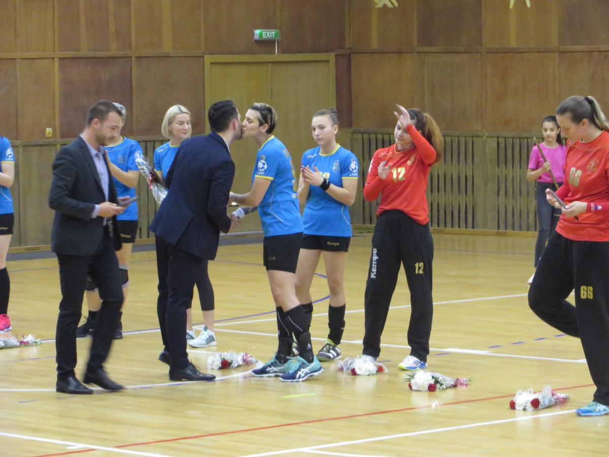 Partida a început cu o festivitate, fiecare handbalistă de la echipa gazdă a primit câte un buchet de flori, iar jucătoarele care au încheiat colaborarea cu HC Dunărea, au mai primit şi câte o plachetă.