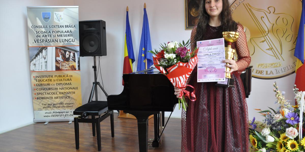 Câștigătoarea Marelui Premiu și al Trofeului Concursului Național de Pian „Virtuozii”, care s-a desfășurat la Brăila, în perioada 6-7 aprilie a.c., este Sara-Adriana Leu, în vârstă de 16 ani, elevă a Liceului de Arte „Hariclea Darclee” Brăila (profesor Galina Cojocari).