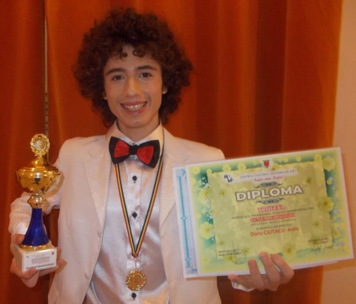 Elevul Şcolii de Arte "Vespasian Lungu", Doru Ciutacu, prof. Liliana Chiriţă, a reuşit să cucerească trofeul Festivalului internaţional pentru copii "Ceata lui Piţigoi", ediţia a XIII-a, care a avut loc în weekend, la Galaţi. El a participat la secţiunea 15 - 18 ani. Această performanţă i-a asigurat calificarea la două festivaluri similare, unul la Sibiu şi altul în Bulgaria. Cel de-al doilea elev al şcolii înscris la aceeaşi competiţie, Mihai Pătulea - prof. Galina Cojocari, a participat la secţiunea 6 - 8 ani şi a obţinut menţiune. Organizatorul evenimentului a fost Centrul Cultural "Dunărea de Jos".