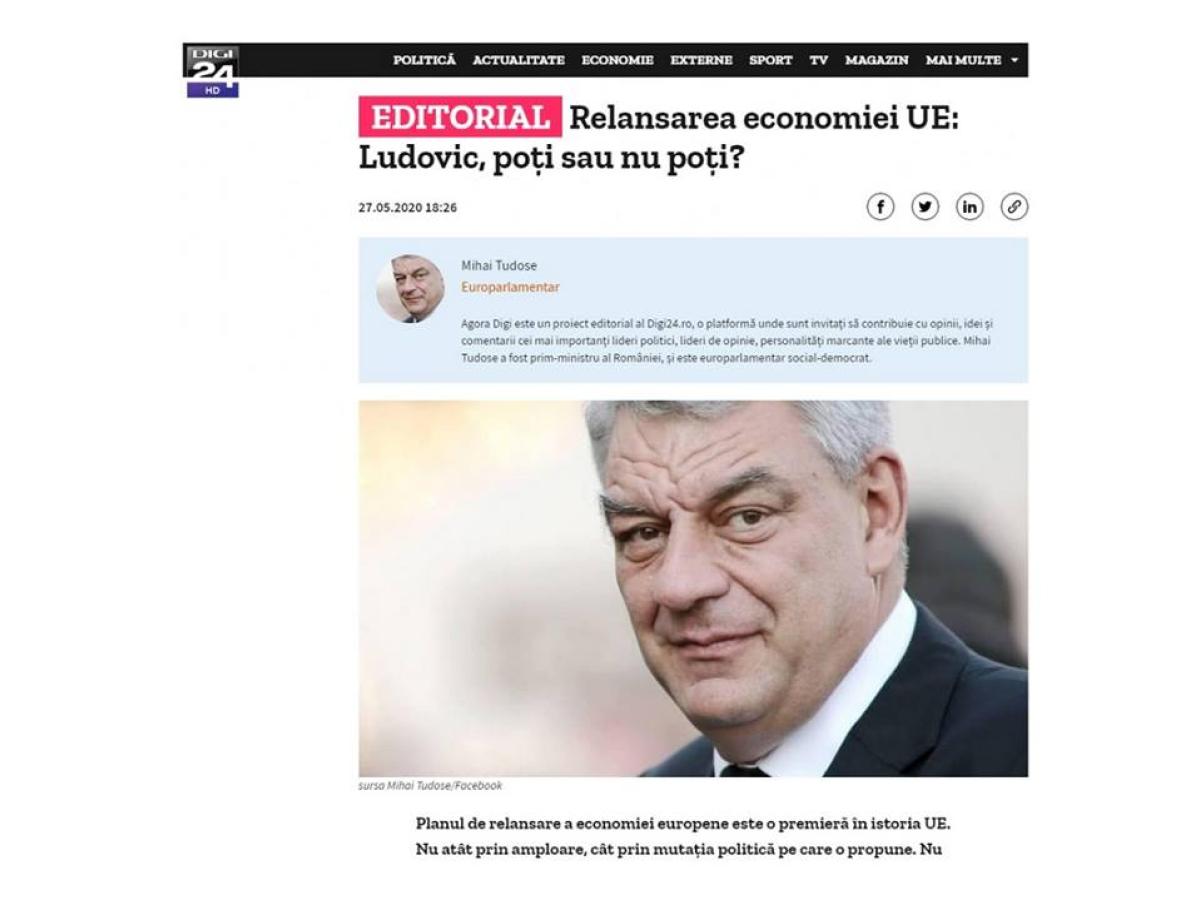 * este mesajul dur transmis de europarlamentarul PSD Brăila Mihai Tudose, în cadrul unui editorial publicat de Digi24.ro, privitor la relansarea economiei UE * acesta a venit cu o provocare pentru Guvernul Ludovic Orban, în contextul în care au loc dezbateri privind planul de relansare a economiei europene
