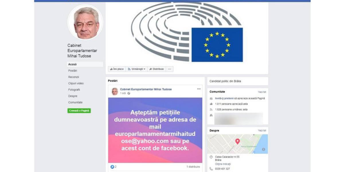 • europarlamentarul brăilean Mihai Tudose şi-a creat o pagină de Facebook cu denumirea Cabinet Europarlamentar Mihai Tudose, pentru a păstra legătura cu brăilenii, în contextul pandemiei de coronavirus • acesta a anunţat că şi-a suspendat temporar audienţele de la Cabinetul de europarlamentar, însă i-a invitat pe brăileni să îi trimită petiţii online