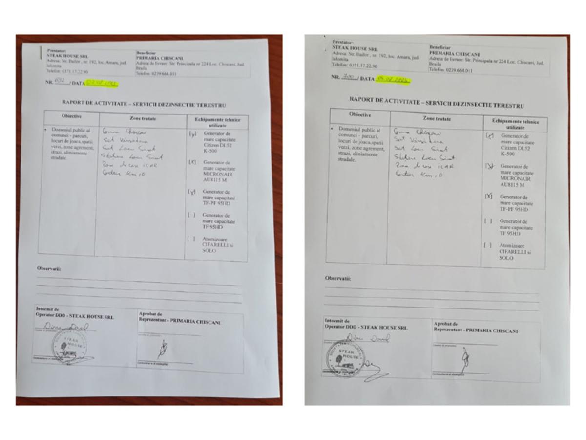 Primarul ne-a pus la dispoziție și două documente privind cele mai recente acțiuni contra țânțarilor pentru a-și susține cauza.