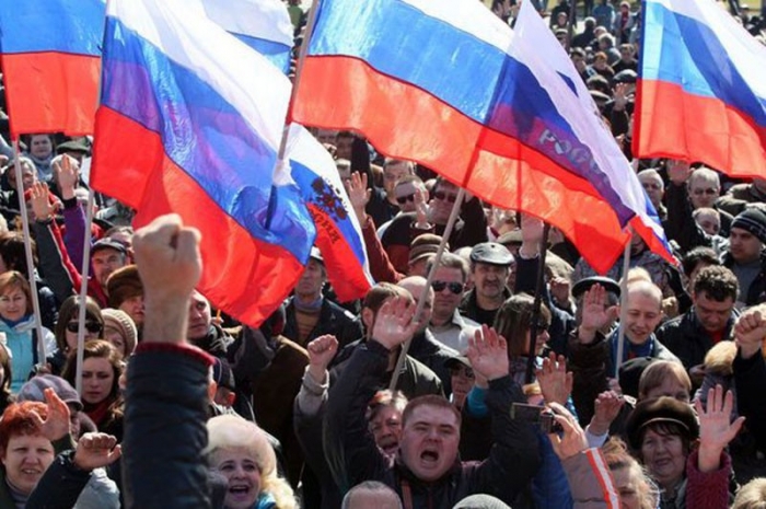 Mai târziu, „Consiliul popular" a mai adoptat o decizie - aderarea republicii nou create la Rusia. La auzul acestei informaţii, manifestanţii au început să strige: „Putin, ajută-ne!".