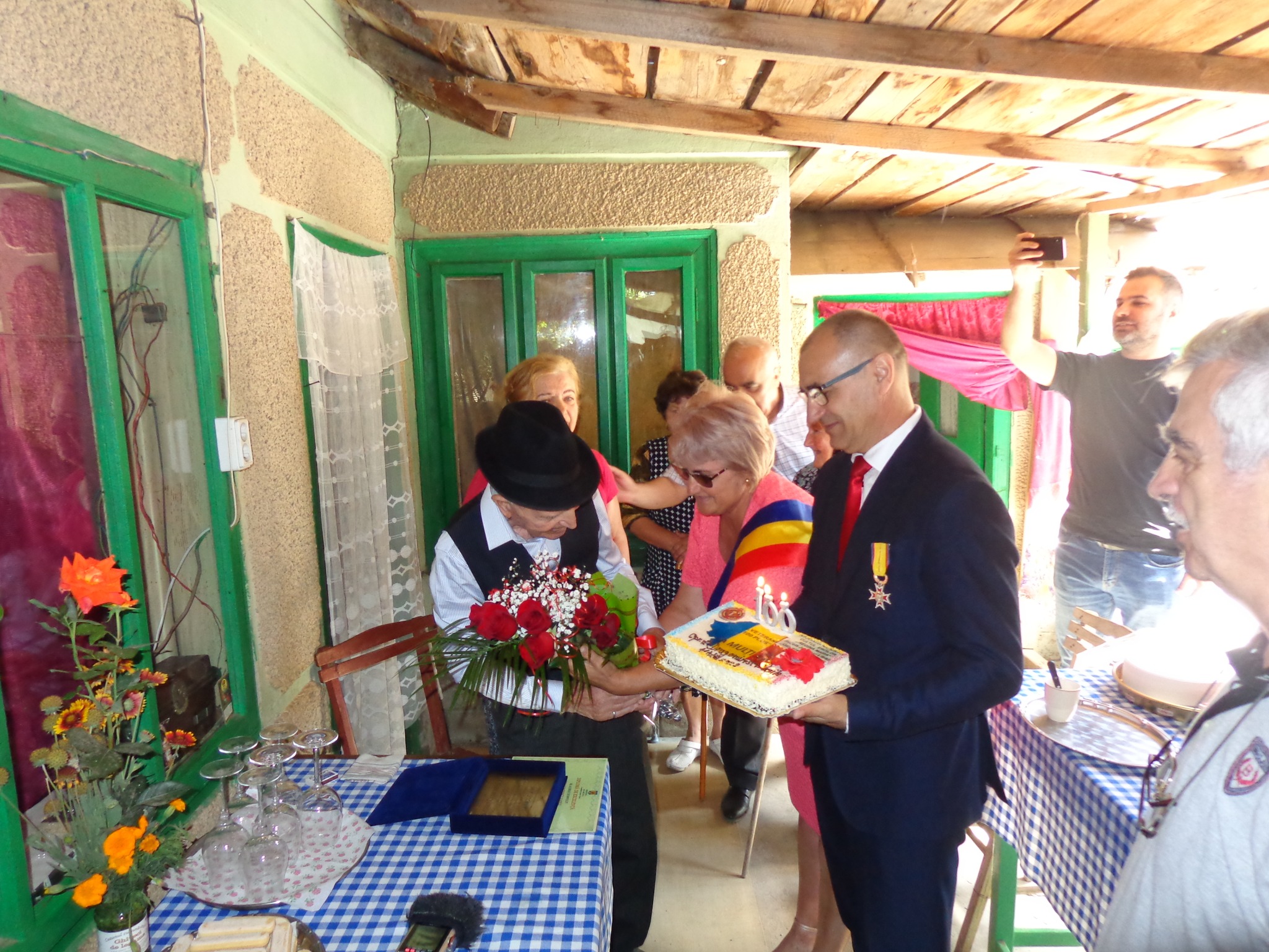 Luptător pe ambele fronturi ale celui de-Al Doilea Război Mondial, maiorul în retragere Vasile Dragomirescu - ultimul veteran de război din comuna brăileană Viziru - a fost sărbătorit, săptămâna aceasta (pe data de 11 iulie) la împlinirea vârstei de 100 de ani. I-au fost alături copiii și nepoții, dar și reprezentanții Filialei Brăila "General Stan Poetaș" a Asociației Naționale Cultul Eroilor "Regina Maria", care i-au înmânat un tort în culorile drapelului național, cu stema României, în cadrul acțiunii VETERAN 100 PLUS. L-au felicitat, de asemenea, pe venerabilul veteran de război - care a luptat pe ambele fronturi ale celui de-Al Doilea Război Mondial și care le-a împărtășit oaspeților câteva dintre întâmplările acelor ani de restriște, în care a slujit cu demnitate România sub drapel - primarul comunei Viziru, Ana-Cornelia Măcrineanu (care i-a oferit mr. (ret.) Vasile Dragomirescu o frumoasă plachetă aniversară), reprezentanți ai Ganizoanei Brăila și ai Asociației Veteranilor din Al Doilea Război Mondial.