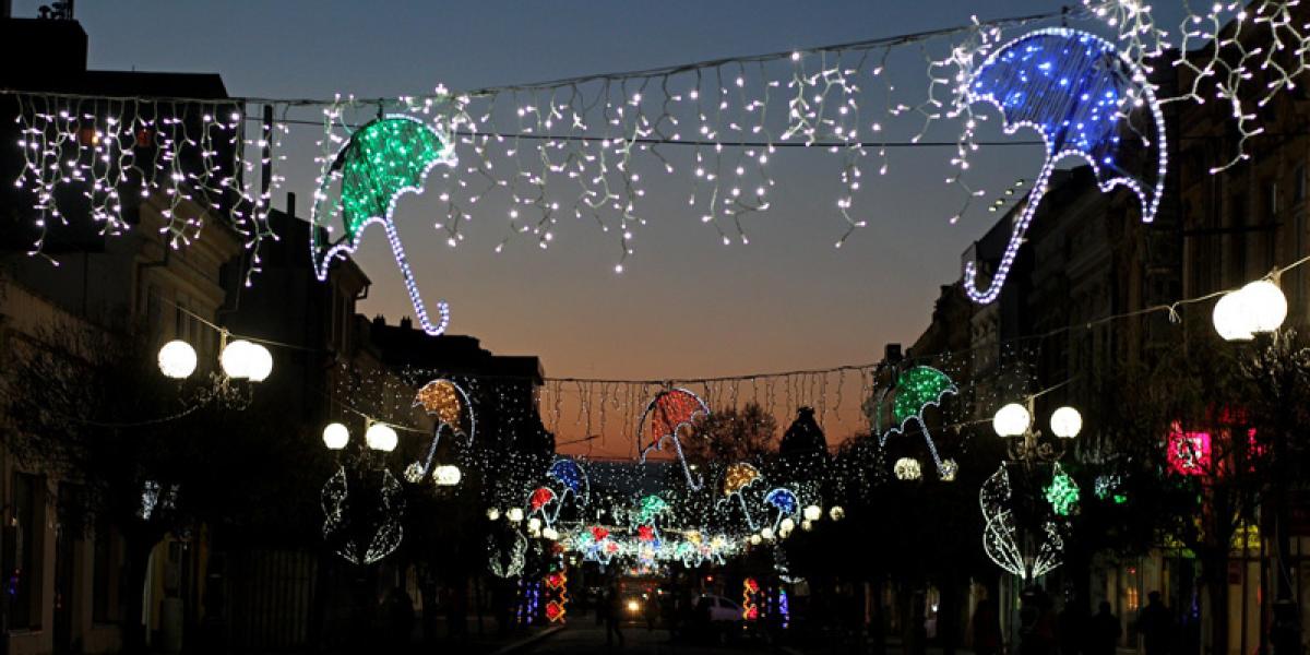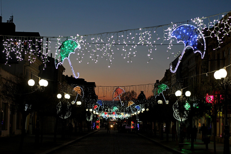 Pentru că ideea umbrelelor colorate atârnate deasupra străzii Mihai Eminescu a prins atât de bine astă vară, Primăria a hotărât să le facă brăilenilor o surpriză şi a mai montat umbrele colorate şi acum, în preajma Sărbătorilor de Iarnă. De data aceasta, însă, umbreluţele sunt speciale, fiind făcute nu din spiţe metalice şi material rezistent la umezeală ci din led-uri prinse pe un cadru de plastic. Este vorba de instalaţii luminoase care, începând de ieri, de Sfântul Nicolae, vor împodobi principala arteră pietonală a Brăilei până la jumătatea lunii ianuarie, la Boboteaza lipovenilor, când se vor termina oficial Sărbotorile de Iarnă la Brăila. Pentru prima dată după foarte mulţi ani, astfel de instalaţii luminoase au fost poziţionate pe transversalul străzii Mihai Eminescu, iar efectul obţinut este unul cu totul deosebit.