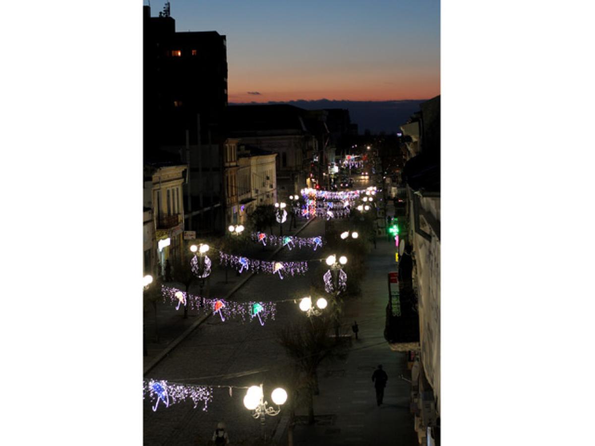 • de data aceasta este vorba despre instalaţii luminoase care vor împodobi principala arteră pietonală a Brăilei până la jumătatea lunii ianuarie • sunt instalaţii special făcute pentru această stradă, după ce ideea umbrelelor colorate de astă vară a prins foarte bine, fiind apreciată atât de brăileni cât şi de cei care ne-au vizitat oraşul