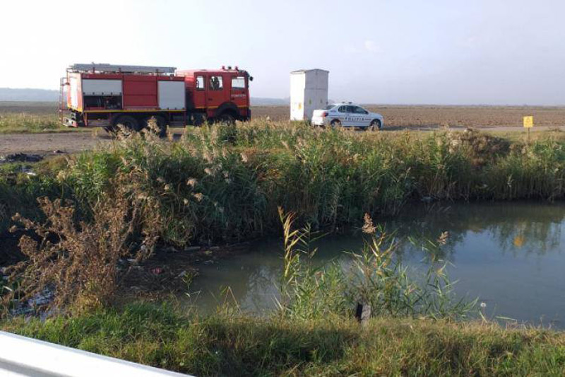 • joi noapte, un şofer a pierdut controlul asupra maşinii într-o curbă şi a căzut cu maşina, în care se aflau 4 persoane, într-un canal de irigaţii