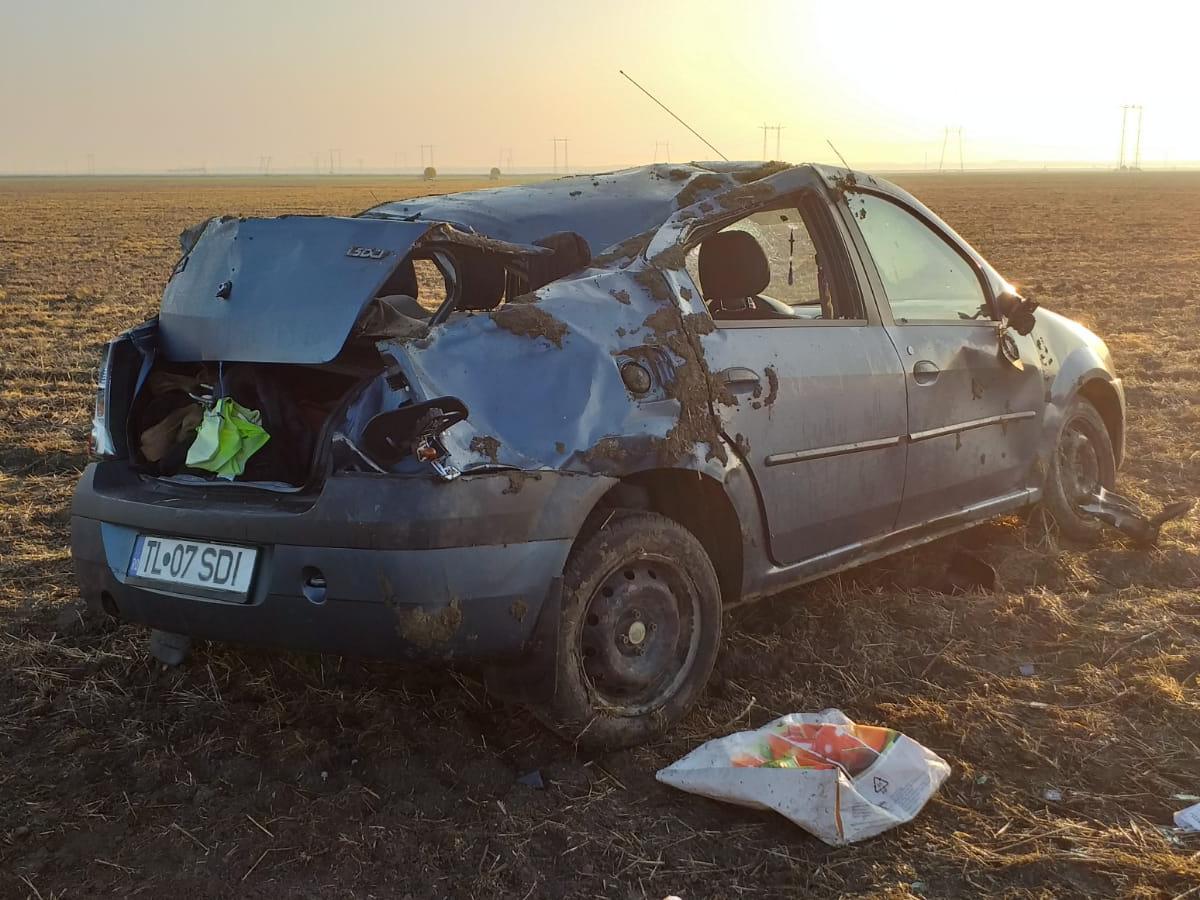 Potrivit polițiștilor, la ora 6.33, un bărbat de 56 de ani din județul Tulcea conducea un autoturism pe DJ 221 B, în afara localității Vădeni. Acesta a pierdut controlul asupra mașinii, a părăsit partea carosabilă și s-a răsturnat. A rezultat vătămarea corporală a șoferului și a unui pasager , un bărbat de 52 de ani din județul Călărași. Victimele au fost transportate la spital pentru acordarea de îngrijiri medicale. Conducătorul autovehicului a fost testat cu aparatul etilotest, rezultatul fiind zero. S-a întocmit dosar penal și se continuă cercetările sub aspectul săvârșirii infracțiunii de vătămare corporală din culpă.