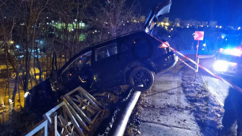 • șoferul a pierdut controlul volanului, în curba de la Trecere Bac, a sărit peste bordură și a rămas suspendat între trotuar și taluzul falezei • șoferul și pasagerul au ieșit singuri din mașina care a rămas suspendată până la sosirea platformei • accidentul în care a fost implicat autoturismul cu număr de Brăila a avut loc noaptea trecută, informații și fotografii fiind postate de ”Pro Lider FM” din Galați