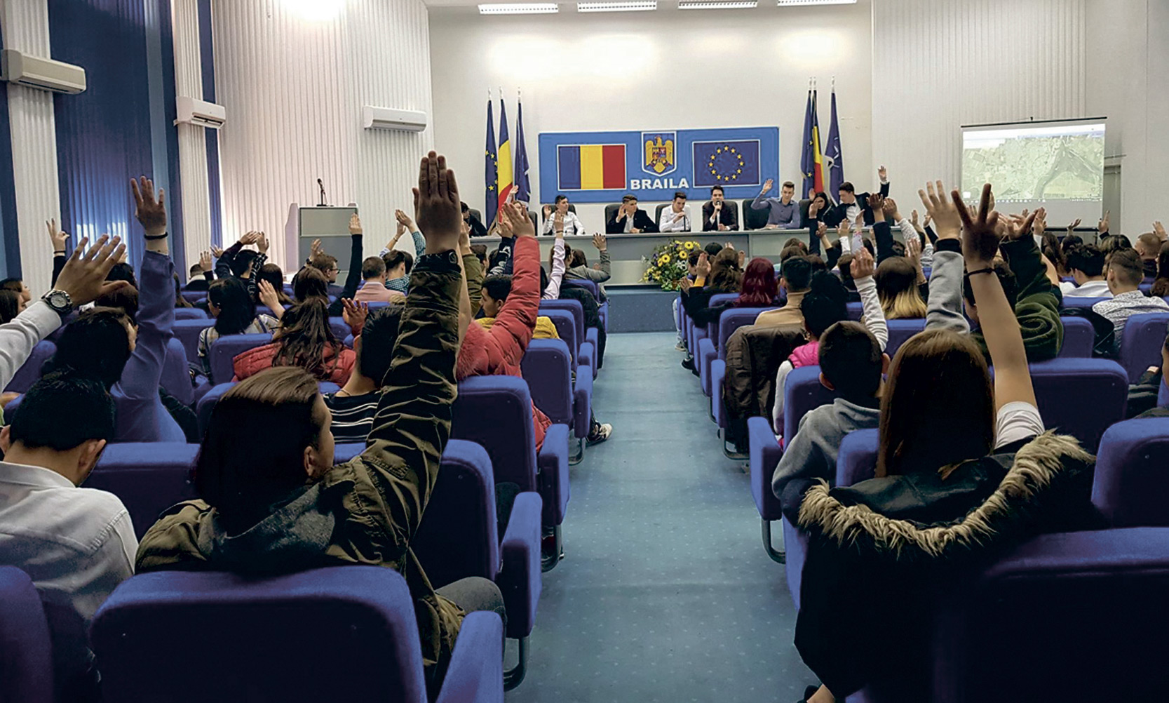• peste 350 de tineri au participat, în perioada 24-27 februarie, la programul “Edili pentru o zi”, proiect prin care au înţeles importanţa, rolul şi funcţiile instituţiilor brăilene • aceştia au jucat rolul de primar, preşedinte de Consiliul Judeţean şi de consilieri locali/judeţeni, au făcut muncă de teren şi au participat la şedinţe, întâlniri şi dezbateri cu reprezentanţi ai autorităţilor locale brăilene • mai mult, tinerii au identificat probleme ale comunităţii şi au venit cu soluţii pentru acestea