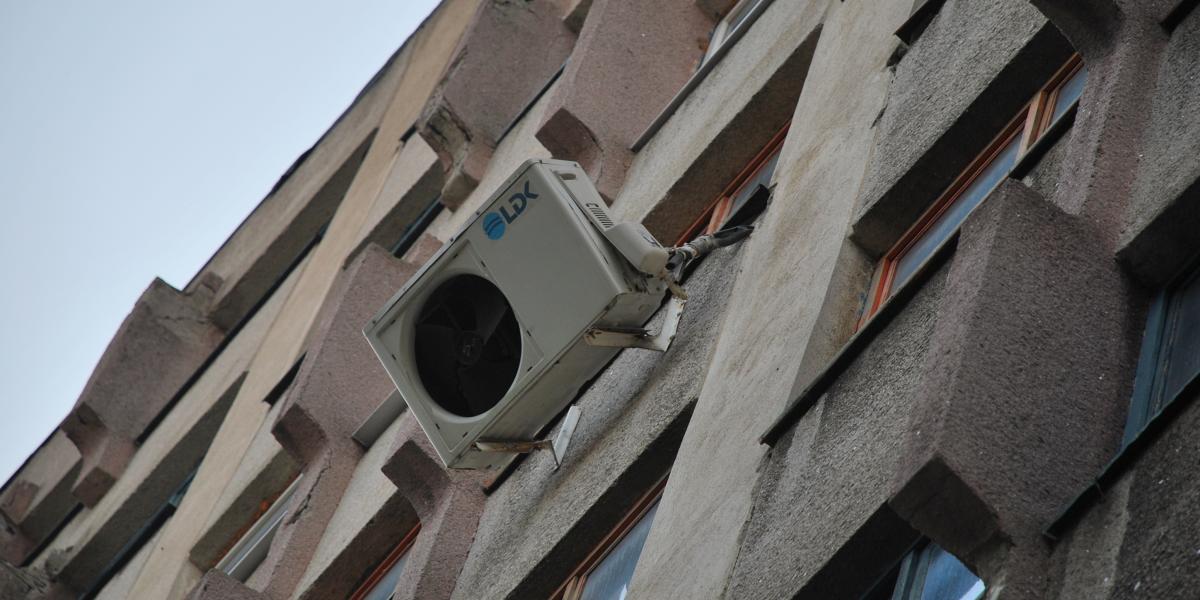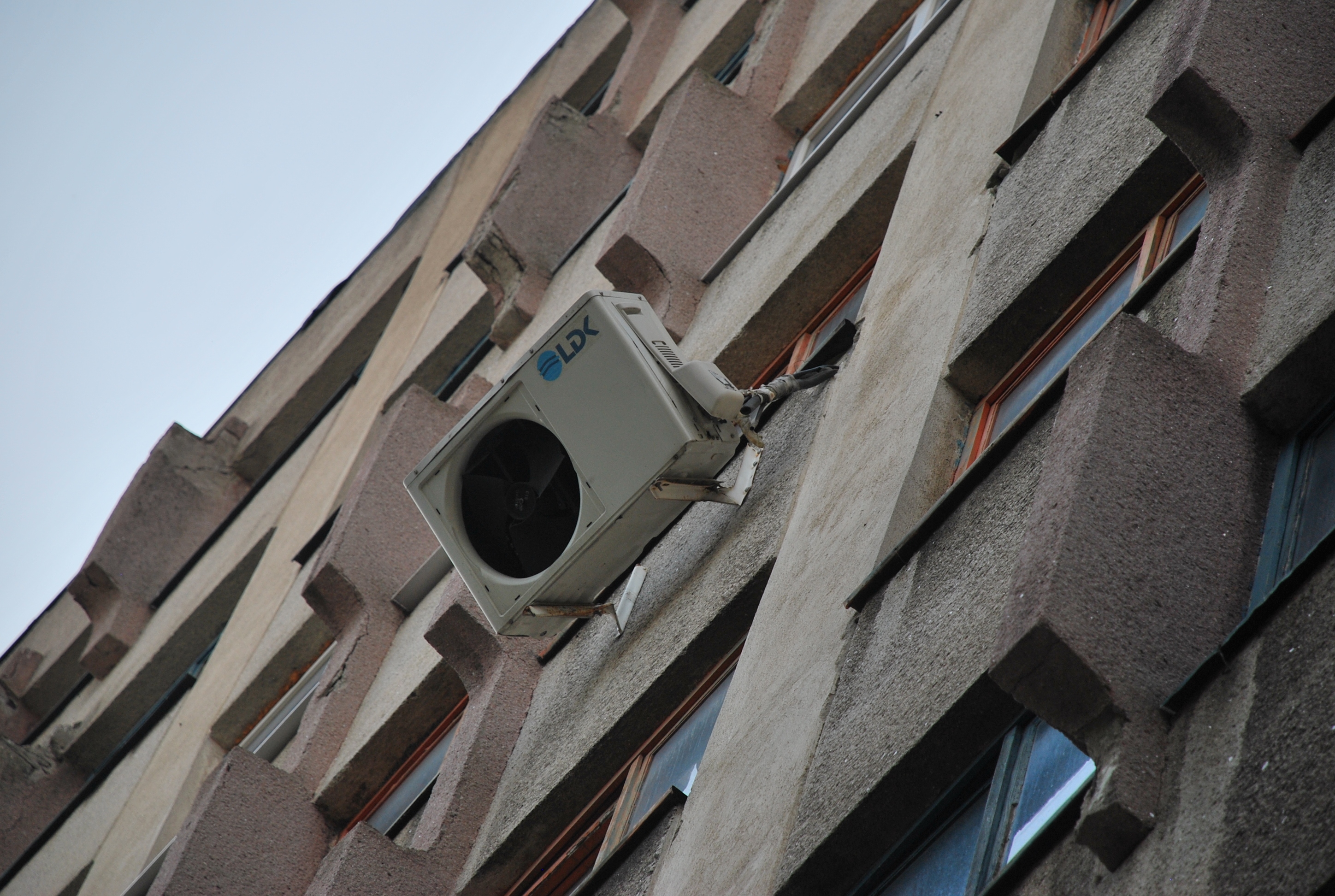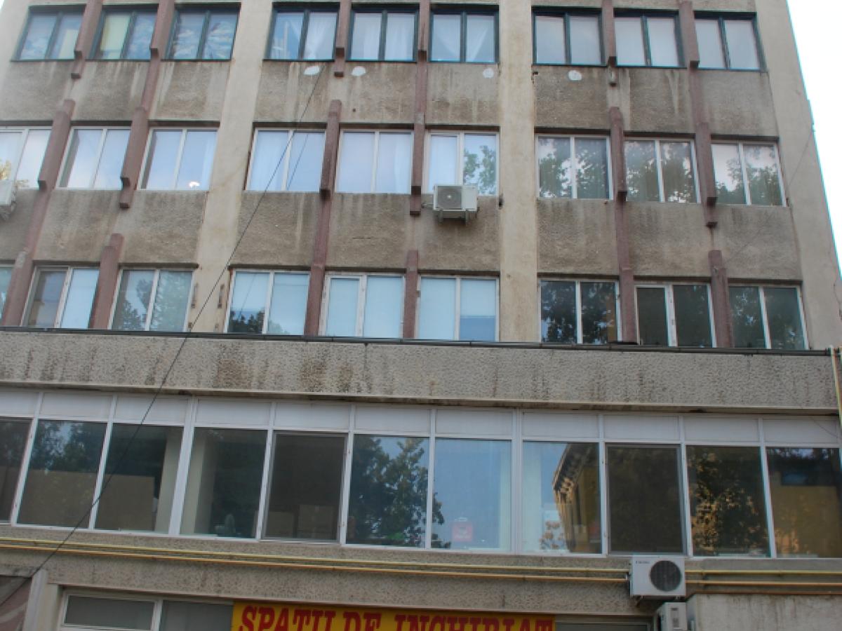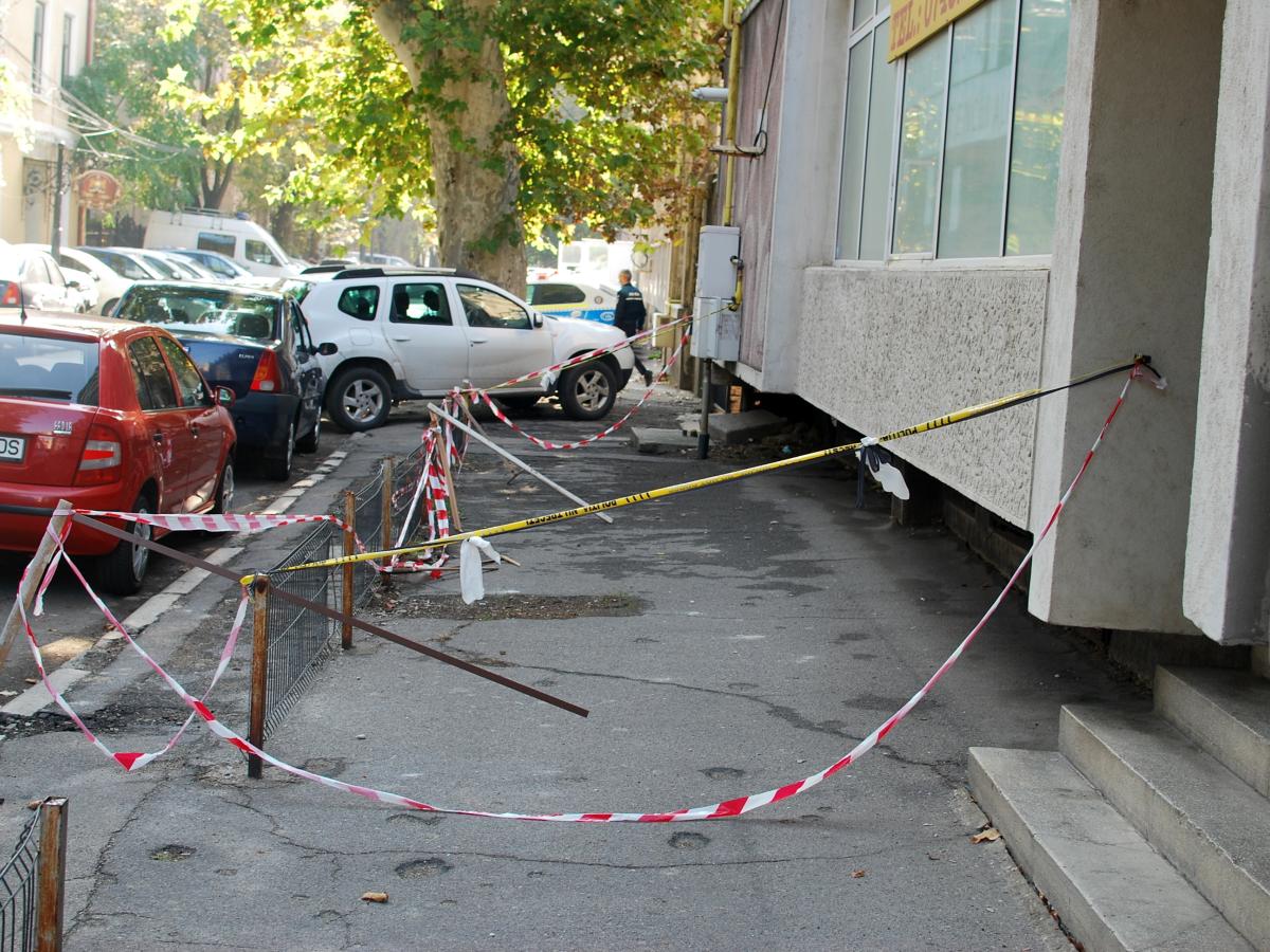 * trotuarul din dreptul clădirii, pe strada Ana Aslan, este blocat de mai bine de o săptămână, trecătorii fiind avertizaţi că trebuie să ocolească zona, deoarece cade tencuiala de pe faţadă * de fapt, se pare că de vină este un aparat de aer condiţionat, care s-a aplecat periculos, lăsând impresia că poate să cadă în orice moment
