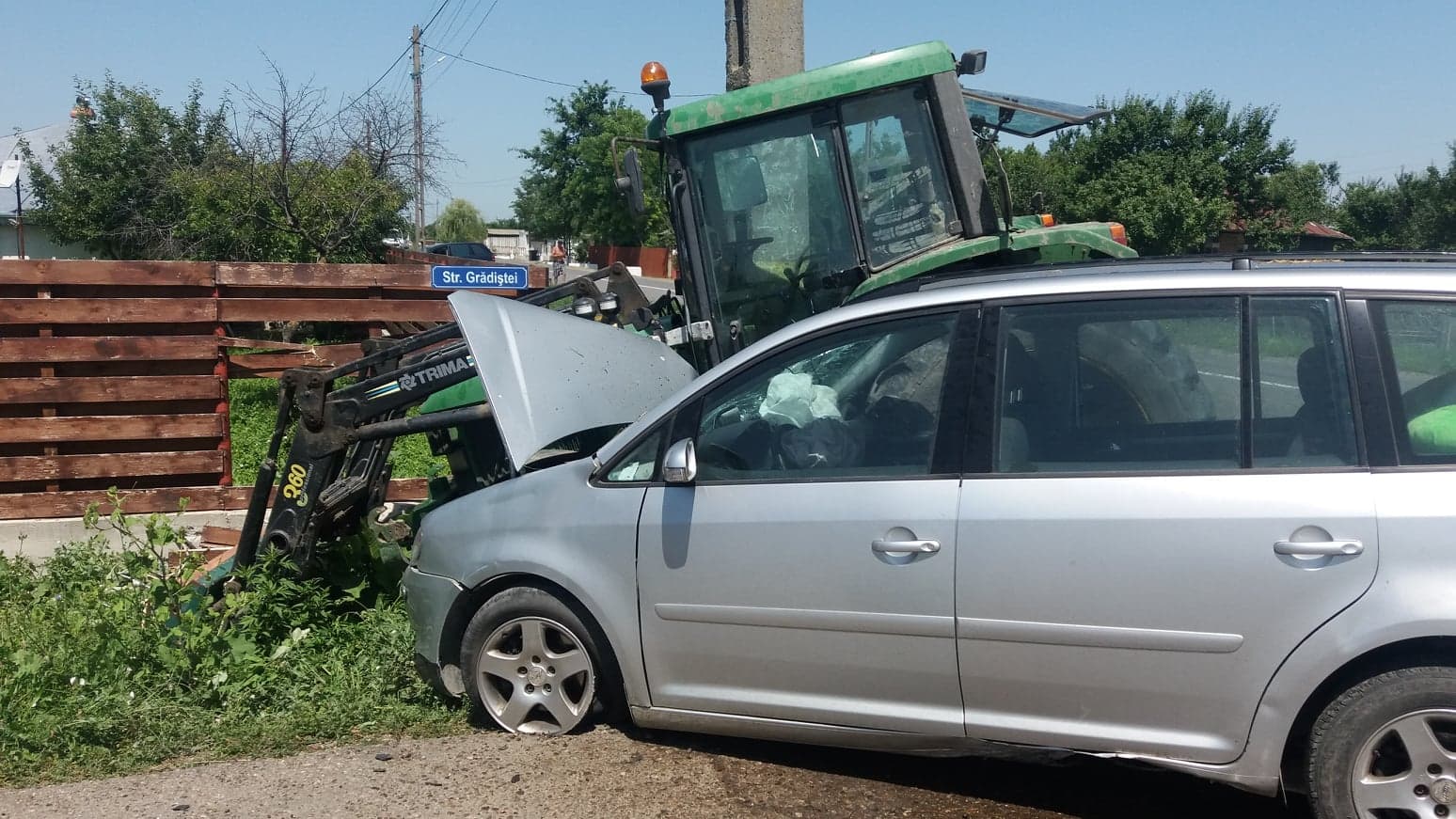 Depășire riscantă. Patru persoane aflate într-un autoturism care venea de la Mare au ajuns la spital. Asta după ce mașina s-a ciocnit cu un tractor. Accidentul s-a produs pe DN 23 (Brăila - Focșani), la intrare în localitatea brăileană Gulianca, intersecție cu strada care duce spre Salcia Tudor.