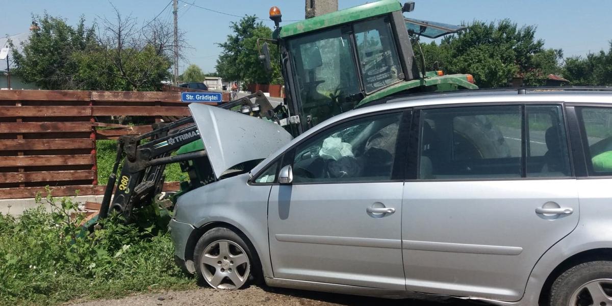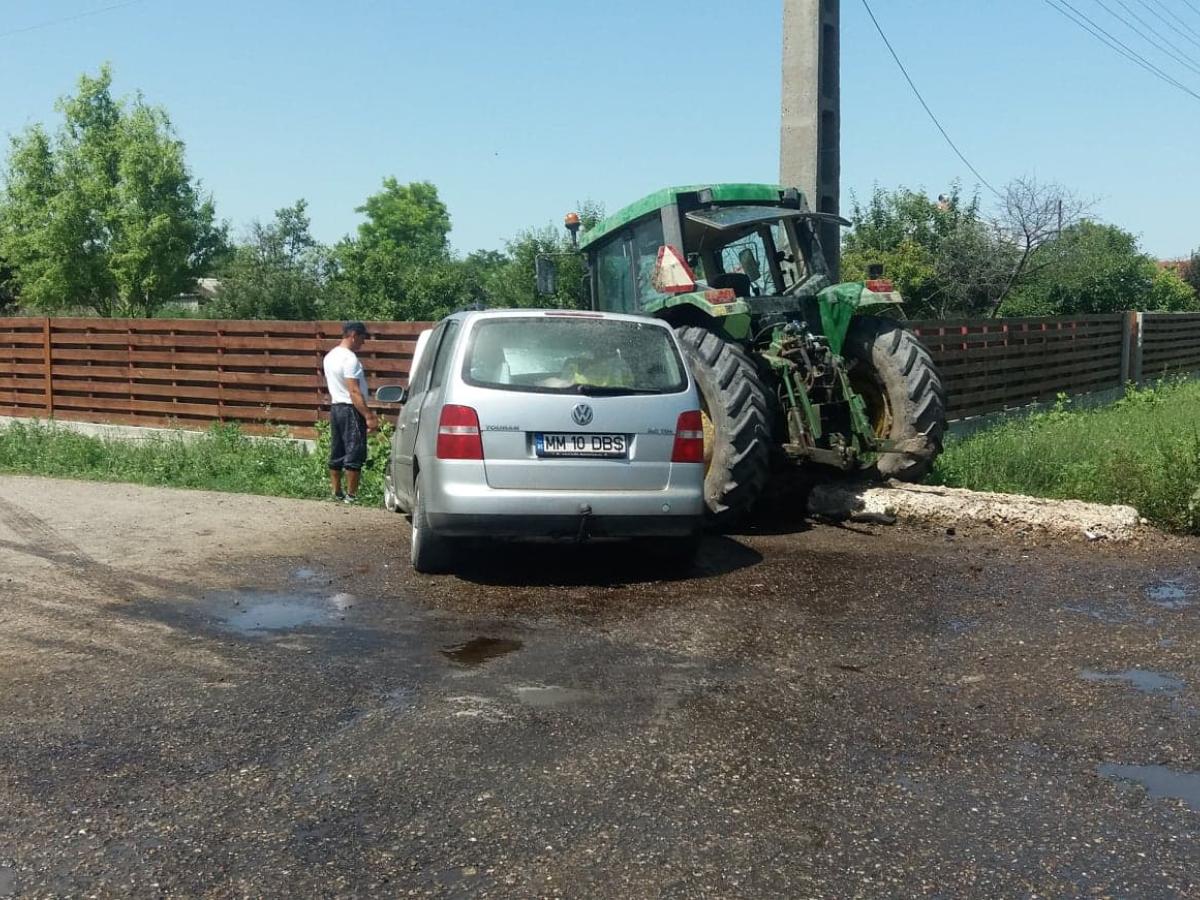 * șoferul unui autoturism Volkswagen a intrat într-o depășire pe linie continuă și s-a ciocnit cu un tractor care virase stânga * accidentul s-a produs la intrare în Gulianca, la intersecție cu drumul spre Salcia Tudor * autoturismul condus de un bărbat din Baia Mare venea dinspre Litoral