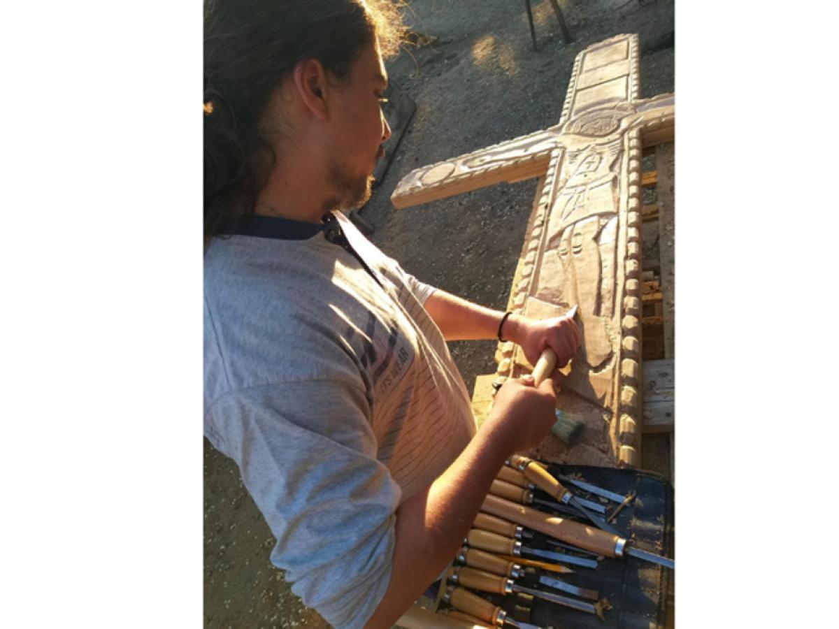 O lucrare de suflet, realizată de Mihai-Valentin chiar în satul natal, Valea Cânepii, a fost troița de lemn din cimitir. Vechea troiță era atât de veche și de degradată, încât se prăbușise la pământ. Nu se mai știa nici cine a pictat-o și nici cine a așezat-o în cimitir. A fost prima lucrare în lemn, realizată de artistul de la Valea Cânepii.