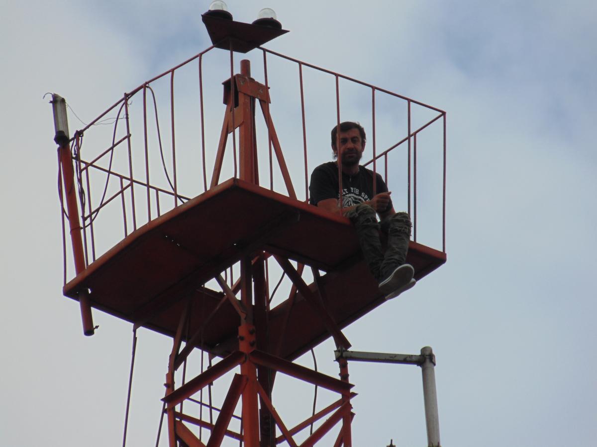 UPDATE: Bărbatul a coborât de pe antenă. Acesta nu este la prima „ispravă” de acest gen. Îl cheamă Cristian Botu, iar în trecut a pus de mai multe ori autoritățile (poliție, pompieri) pe jar, procedând la fel: se urca pe antenă și amenința că se aruncă în gol. Nici acum, nici în alte dăți nu a solicitat nimic. Înainte ca brăileanul să ia decizia de a coborî, lucrătorii Inspectoratului pentru Situații de Urgență Brăila solicitaseră colegilor de la Slobozia o pernă pneumatică.