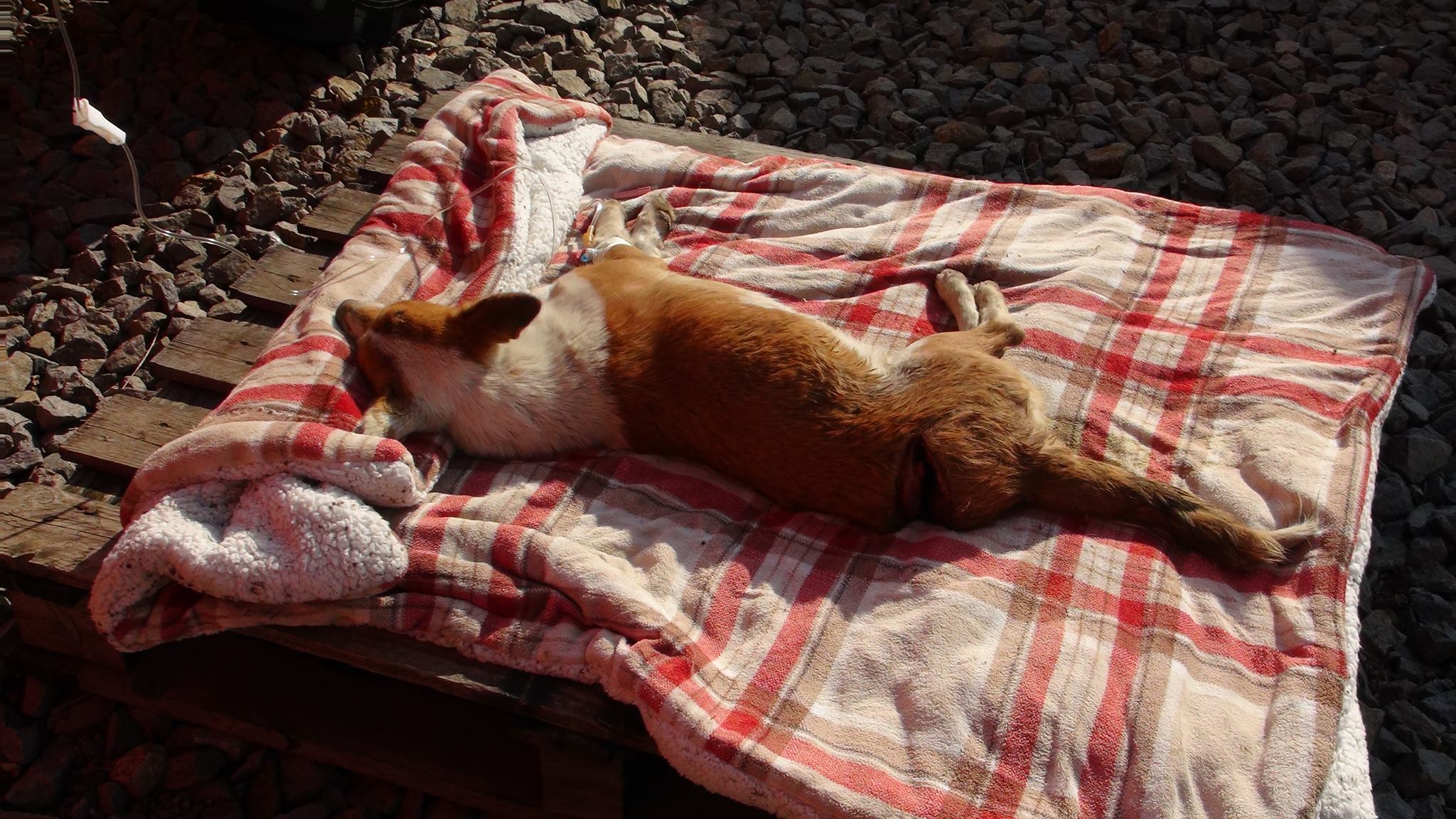 În această dimineaţă voluntarii de la Don Resque au găsit un câine comunitar tăiat cel mai probabil cu o sabie. Cinele agoniza pe o stradă din cartierul Brăilita. Deşi l-au văzut suferind, locatarii zonei, în loc să sune la protecţia animalelor sau poliţie, nu au făcut decât să-i dea o coajă de pâine şi apă. Într-un târziu în această dimineaţă au anunţat autorităţile.