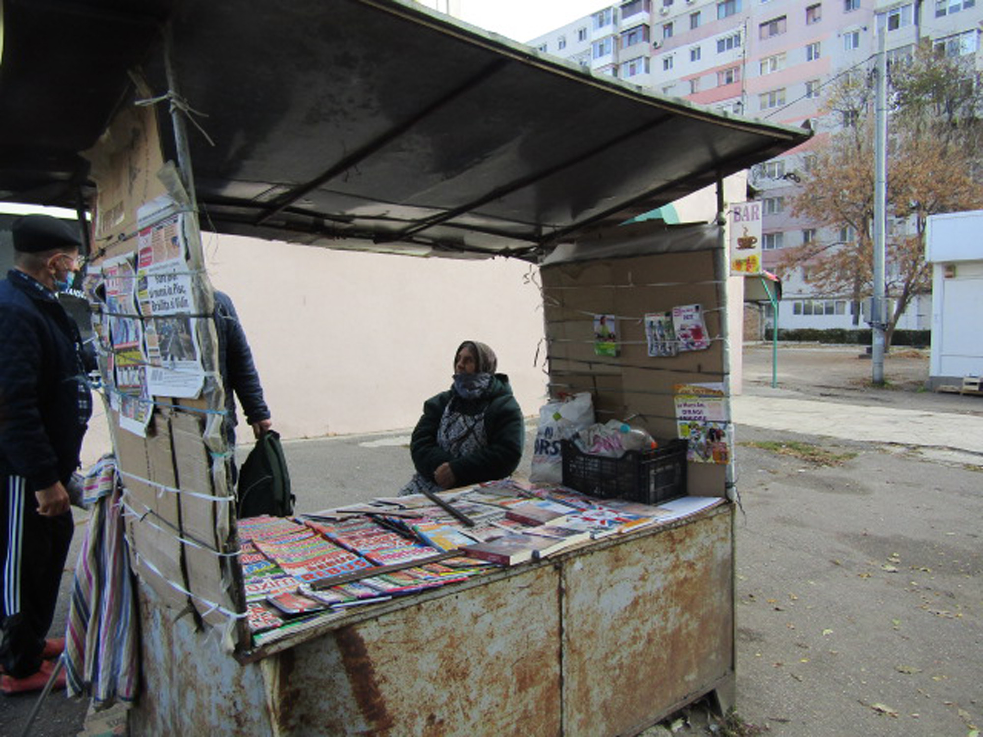 Foarte greu pentru cei cu pensii mici și care, de voie de nevoie, își mai găsesc o mică sursă de supraviețuire. Așa cum procedează o bătrânică, prezentă zilnic, pe trotuar, de la ora 6.00 la 12.00, în zona fostei piețe Libelula. După o viață întreagă de muncă grea la TO2 (Turnătoria de Oțel) din Promex, a rămas singură, iar la pensioara pe care o primește, mai adaugă, când se poate, un comision simbolic din vânzarea de ziare și reviste. ”Sunt zile când nu scot nici un leu. Dar aici mai uit de boli și necazuri stând de vorbă cu oamenii. Ce să fac, mă ninge, mă plouă... De vreo zece ani vând ziare, cui să mă vait? Îmi mai țin de urât clienții mei, pensionarii… Ar fi fost bun un chioșculeț, dar de unde… Pe ăsta l-am găsit aruncat pe maidan. Da, mamă, plătesc și impozit, asta e...” ni s-a destăinuit tanti Ioana, a cărei tarabă improvizată, ruginită și peticită cu tablă și carton, întărită cu sârme și suspendată pe câțiva bolovani protejează doar ziarele și revistele aranjate frumos pe laturile “inventarului” de care dispune. Poate, cine știe, îi întinde cineva o mână de ajutor, cu un chioșc mai de Doamne ajută…