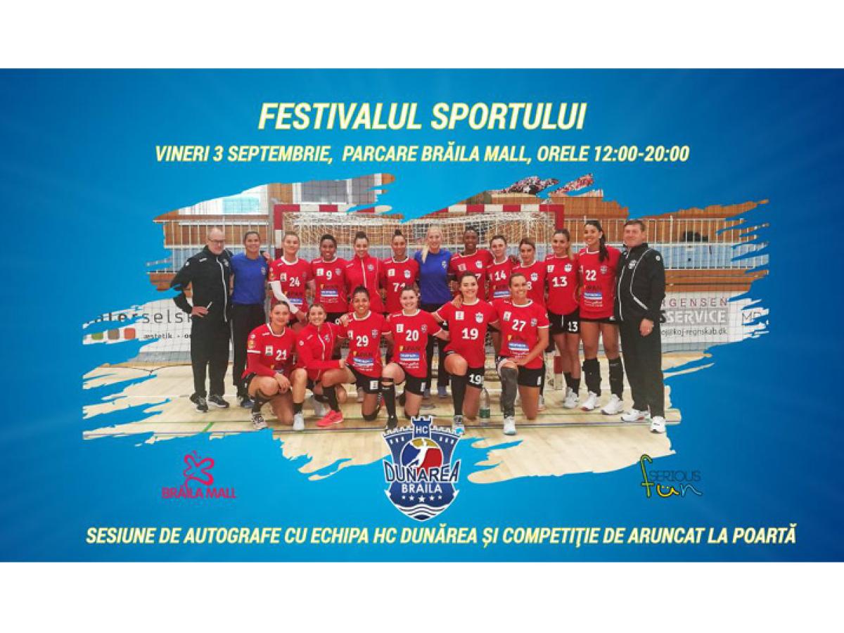 * în zilele de 3 și 4 septembrie, un adevărat “Festival al Sportului” va avea loc în parcarea Brăila Mall * vizitatorii pot participa la o serie de concursuri și pot câștiga premii instant * unul dintre cele mai așteptate momente ale evenimentului va avea loc vineri și include o sesiune de autografe cu jucătoarele echipei HC Dunărea Brăila, împreună cu o competiție de precizie de aruncat la poartă