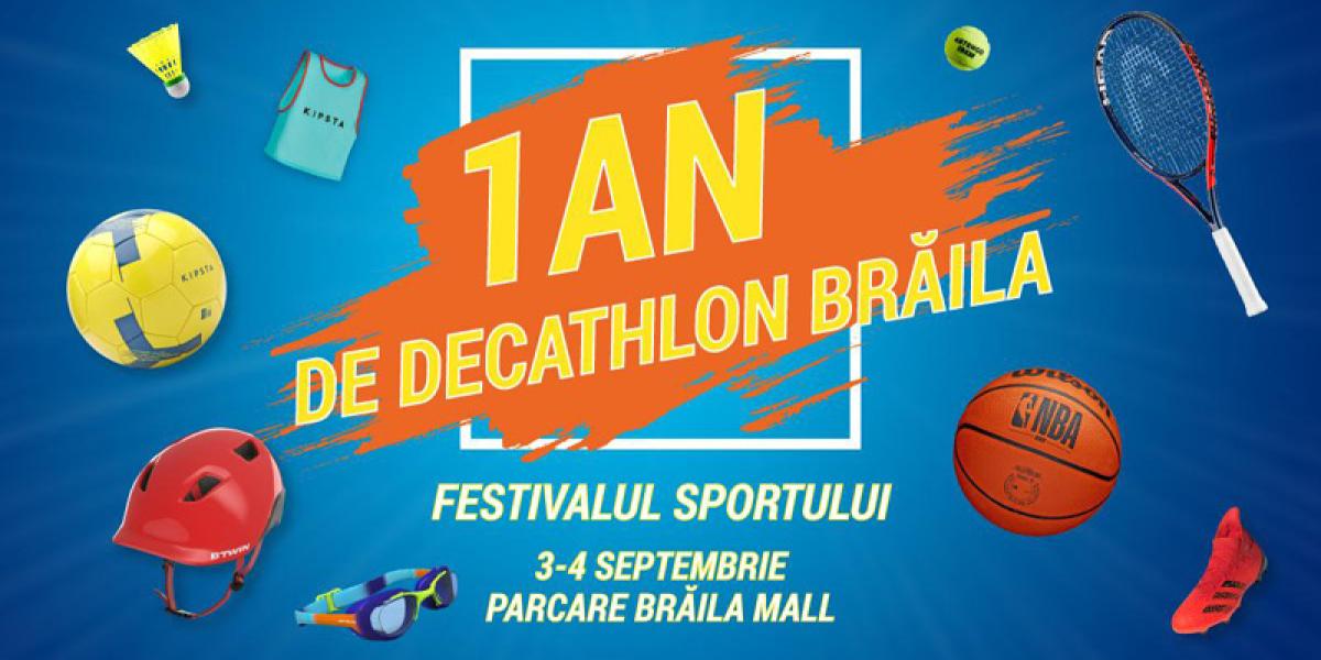 În zilele de 3 și 4 septembrie, Decathlon sărbătorește 1 an de la deschiderea magazinului din Brăila Mall printr-o serie de evenimente și concursuri cu tematică sportivă. Un adevărat “Festival al Sportului”, care se va desfășura în parcarea Brăila Mall între orele 12:00 și 20:00. Concursuri și demonstrații sportive, o sesiune de autografe cu echipa HC Dunărea și numeroase premii pentru participanți, acestea sunt doar câteva dintre surprizele pregătite de organizatori.