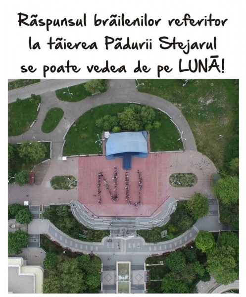 Câteva sute de brăileni s-au adunat, duminică dimineaţă, la ora 10.00, pe platoul din Piaţa Independenţei, în semn de protest faţă de intenţia unui grup de afacerişti locali de a defrişa o parte din pădurea Stejaru. Protestul a fost făcut la iniţiativa caricaturistului Costel Pătrăşcan, iar printre cei care au răspuns apelului acestuia s-au aflat oameni de toate vârstele şi categoriile sociale. Au fost prezenţi şi politicieni locali, făcându-se remarcată prezenţa primarului Aurel Simionescu, a viceprimarului Doiniţa Ciocan, dar şi a câtorva consilieri locali din grupul PSD, printre care Nicu Niţă, Sorin Boşneag sau Silviu Mangiurea. Dintre parlamentarii de Brăila, s-au alăturat protestului deputatul PSD Marian Dragomir şi deputatul UNPR Marioara Nistor.
