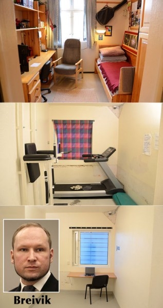 În detenție, Breivik beneficiază de facilități precum trei celule cu două dușuri, două televizoare, Xbox, Playstation și aparate de fitness.