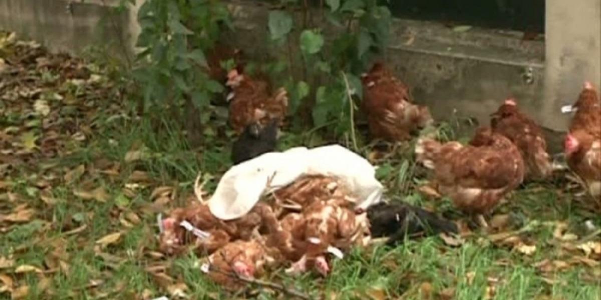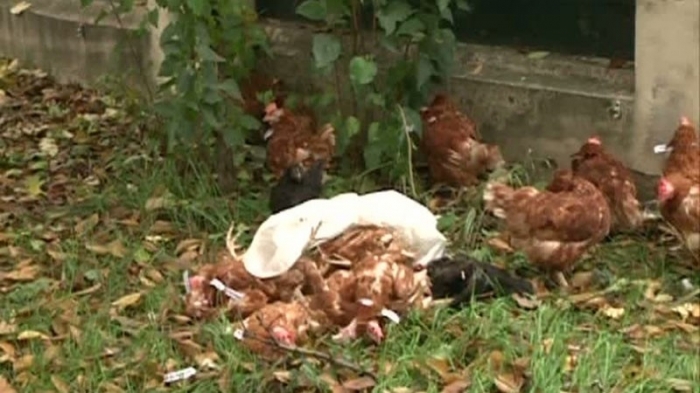 Mai multe găini, unele dintre ele moarte, au fost aruncate, marţi, în curtea sediului ACL din şoseaua Kiseleff, păsările având la gât bileţele pe care scrie: "Eu sunt Iohannis","Mi-e frică de dezbatere".