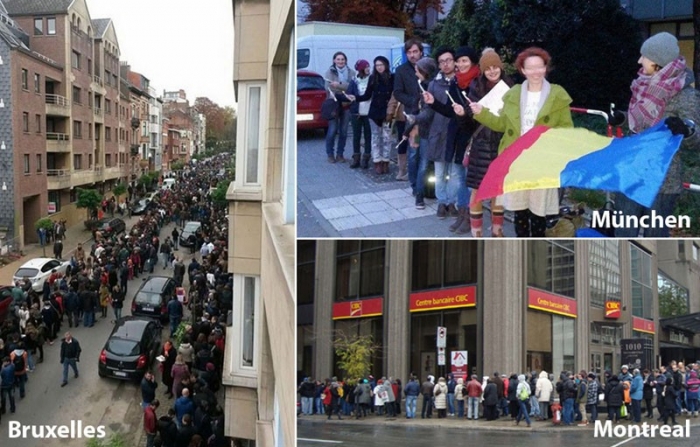 În Statele Unite, aceeaşi situaţie. Ieri la amiază, respectiv 12 - ora locală, o coadă formată din câteva sute de persoane era prezentă la secţia deschisă la Institutul Cultural Român. La fel şi în Montreal.