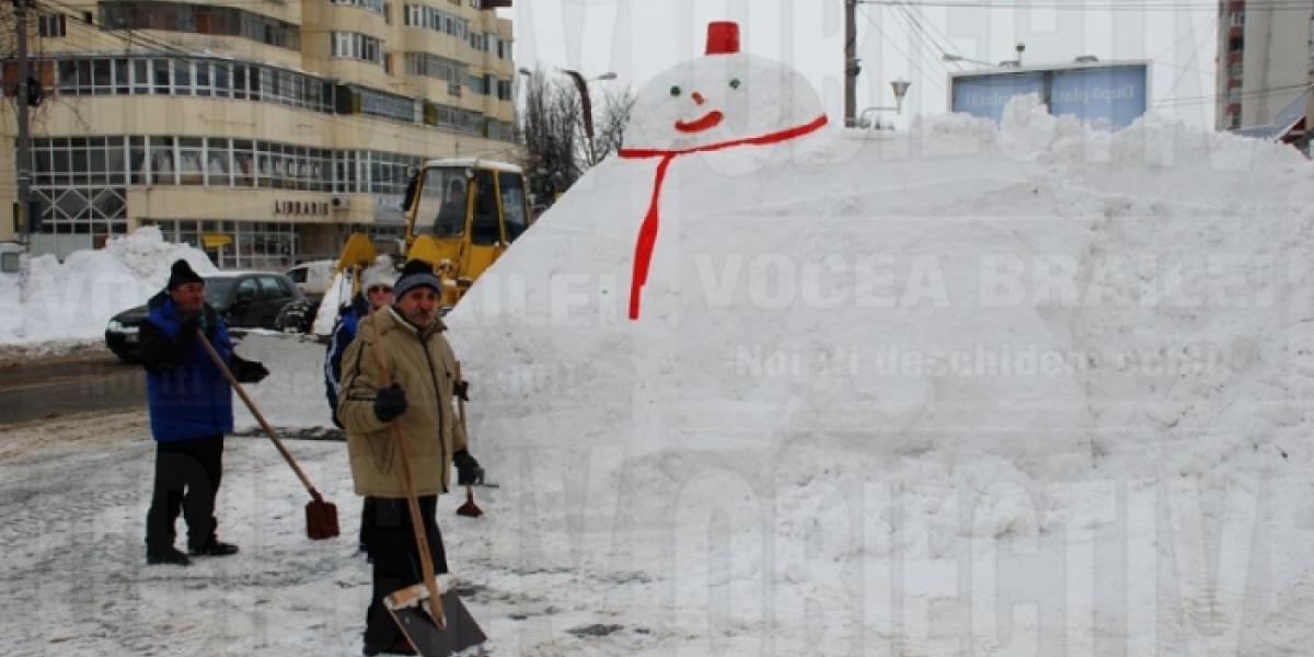 Ideea şi realizarea omului de zăpadă uriaş le aparţine angajaţilor Direcţiei Administraţiei Pieţelor şi Târgurilor Brăila care, dacă tot dau la lopată de vreo două zile ca să cureţe parcarea din dreptul Halei, s-au gândit, probabil, că nu strică să se copilărească niţel. Cert este că mulţi dintre brăilenii care au trecut prin zonă au apreciat gestul, dovadă stând numeroasele poze postate deja pe reţelele de socializare.