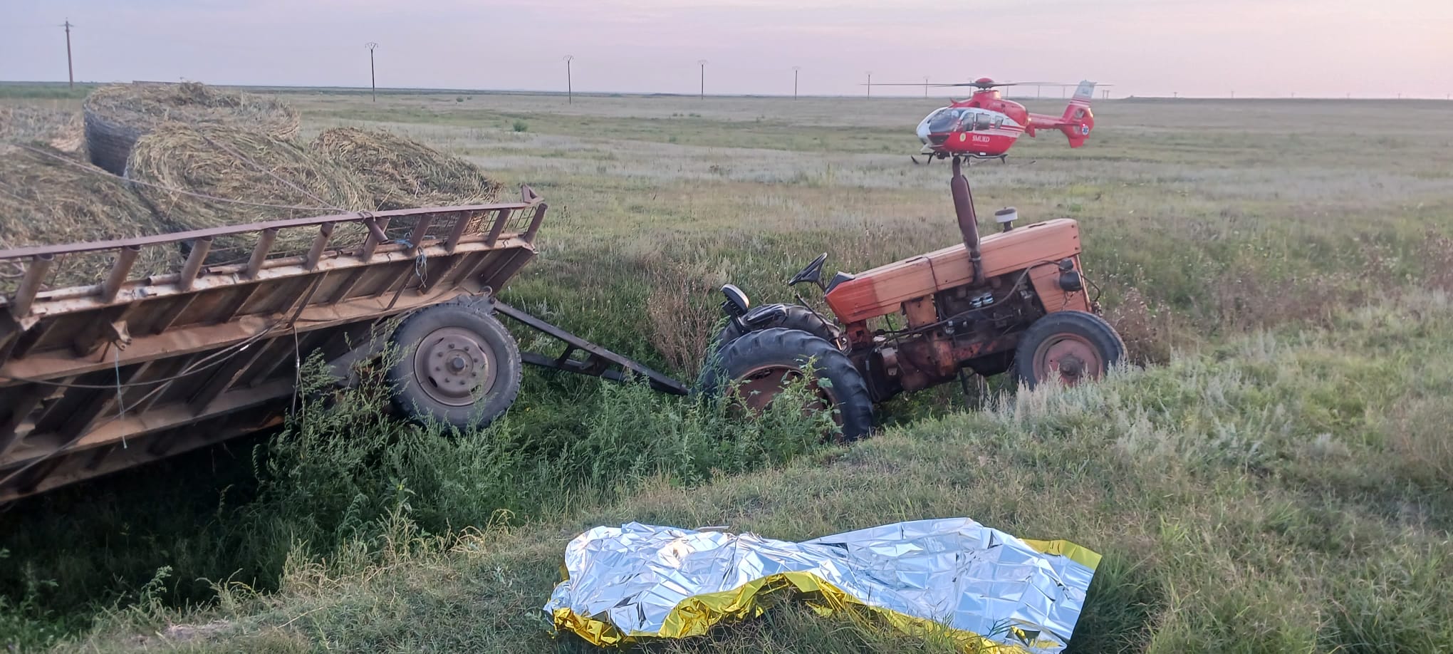 Un bărbat în vârstă de 72 de ani a murit, vineri seară, după ce a fost surprins sub o remorcă cu baloți, care s-a răsturnat într-un cana de pe raza localității Gura Călmățui. În jurul orei 17:54, Garda de interventie Insuratei a intervenit pentru scoaterea victimei de sub remorca răsturnată. La fața locului s-au deplasat o autospecială ISU și o ambulanta SMURD. Totodată, la locul evenimentului s-a deplasat si elicopterul SMURD Galati. In urma accidentului, bărbatul de aproximatix 72 ani a fost declarat decedat prin strivire (prezenta semne incompatibile cu viata) de către medicul de pe ambulanta Serviciului de Ambulanta Judetean Braila.