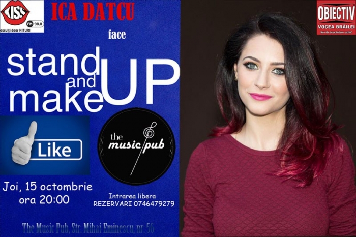 Un eveniment foarte interesant va avea loc, joi, 15 octombrie, începând cu ora 20:00, la The Music Pub din Brăila. Este vorba despre un show unic marca Ica Datcu, unul dintre cei mai cunoscuţi artişti de make-up (machiaj/cosmetică facială) din România. Brăileanca va susţine un spectacol "Make Up & Stand Up Comedy" bazat pe un concept propriu. Mai exact, pe lângă faptul că Ica îşi va pune în valoare abilităţile artistice în cadrul unei demonstraţii de machiaj spectaculoase, în paralel, aceasta va face publicul să râdă. "Va fi improvizaţie în mare parte. Modelul va fi o doamnă/domnişoară din sală, selectată în mod aleatoriu. Totodată, persoanele interesate pot pune întrebări referitoare la machiaj sau întrebări cu potenţial comic", a declarat muzicutistul Cătălin Curcă, organizatorul evenimentului. Trebuie subliniat că intrarea este liberă, însă întreg show-ul susţinut de Ica Datcu va fi filmat. Cei interesaţi de eveniment pot face rezervări la numărul de telefon 0746479279.
