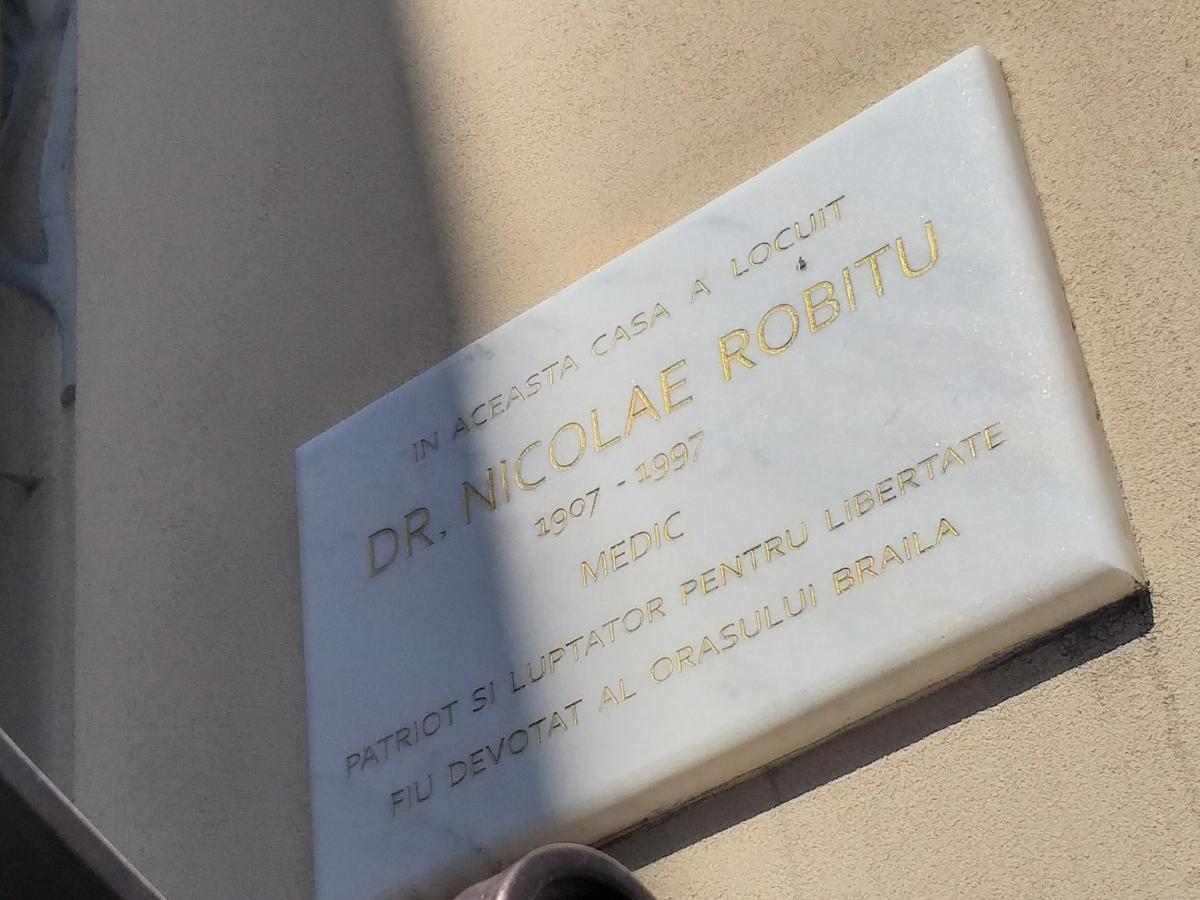 * construită în anul 1900, în stilul Art Nouveau, casa de pe B-dul Cuza nr. 77 a aparținut Dr. Nicolae Robitu, chirurg brăilean, luptător pentru libertate care și-a petrecut tinerețea în temnițele comuniste * aflat în închisoare, Dr. Robitu își ajuta colegii de suferință, operându-i cu o coadă de lingură, pentru că torționarii nu-i puneau la dispoziție instrumentar medical * „În anul morții lui Stalin, călăul suprem al sistemului comunist, printre cei puțini eliberați s-a aflat și doctorul Nicolae Robitu, care și-a regăsit cei doi copii. Dar la eliberare i s-a interzis să părăsească Brăila și să practice meseria la spitalul de unde fusese arestat. Rearestat odată cu valul din 1958/1959, a fost încarcerat în temnițele de exterminare de la Galați, Aiud ș. a. pentru încă 4 ani” (Cicerone Ionițoiu, „Victimele terorii comuniste. Arestați, torturați, întemnițați, uciși”)
