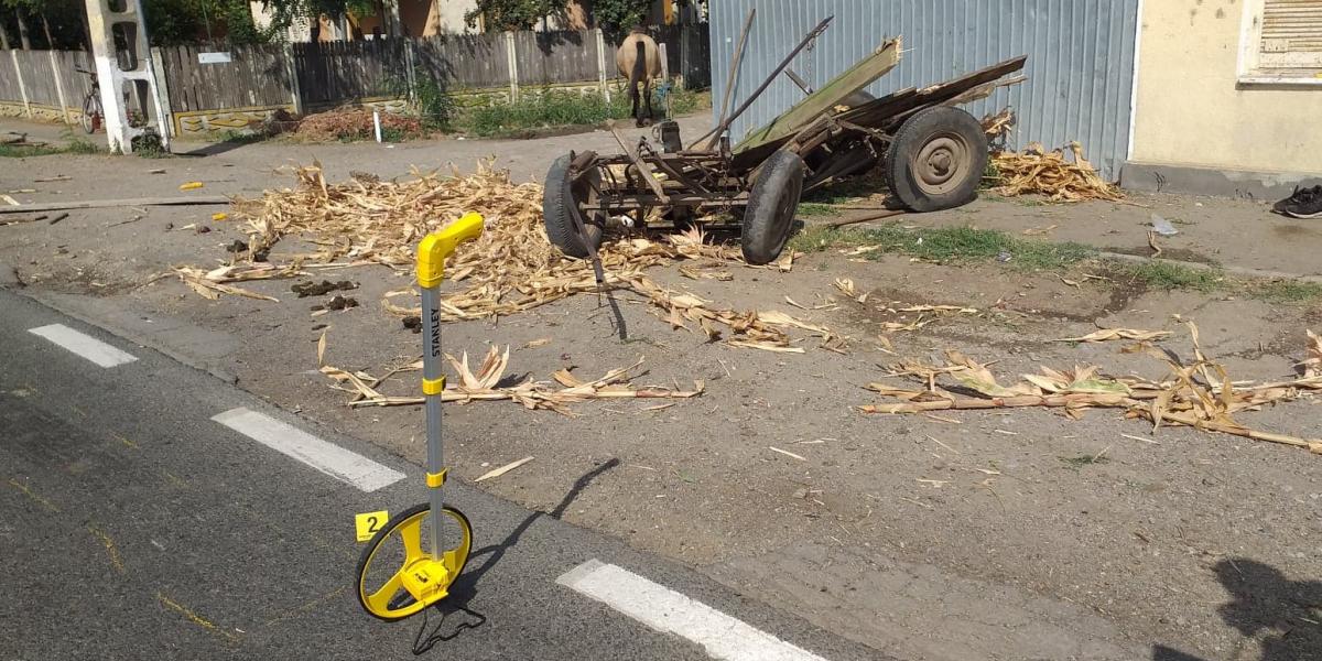 Din fericire, căruțașul a scăpat doar cu câteva răni și a ajuns la spital, chiar dacă vehiculul s-a făcut praf. A scăpat cu viață și calul înhămat la căruță.