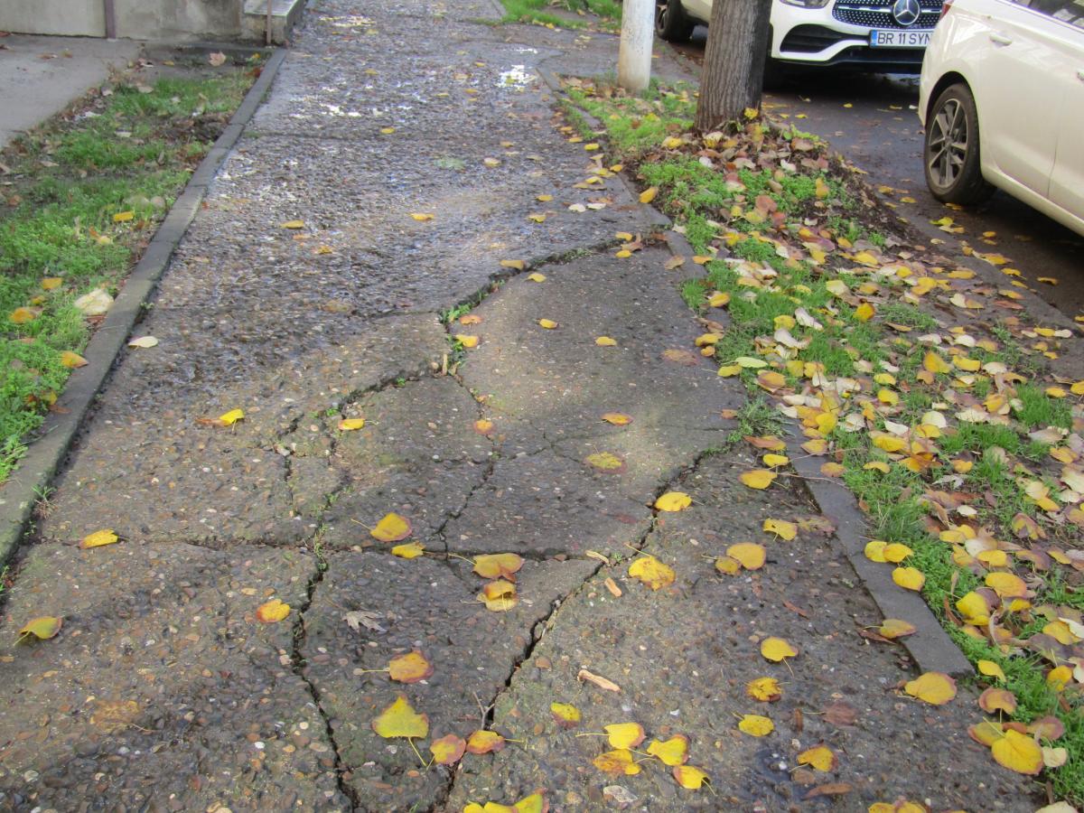 • locatarii zonei se plâng că din cauza stării deplorabile în care se află calea pietonală sunt obligați să meargă pe carosabil, printre mașinile care trec în viteză • un reprezentant al Primăriei transmite că trotuarul în cauză este programat pentru reparații în primăvara anului viitor