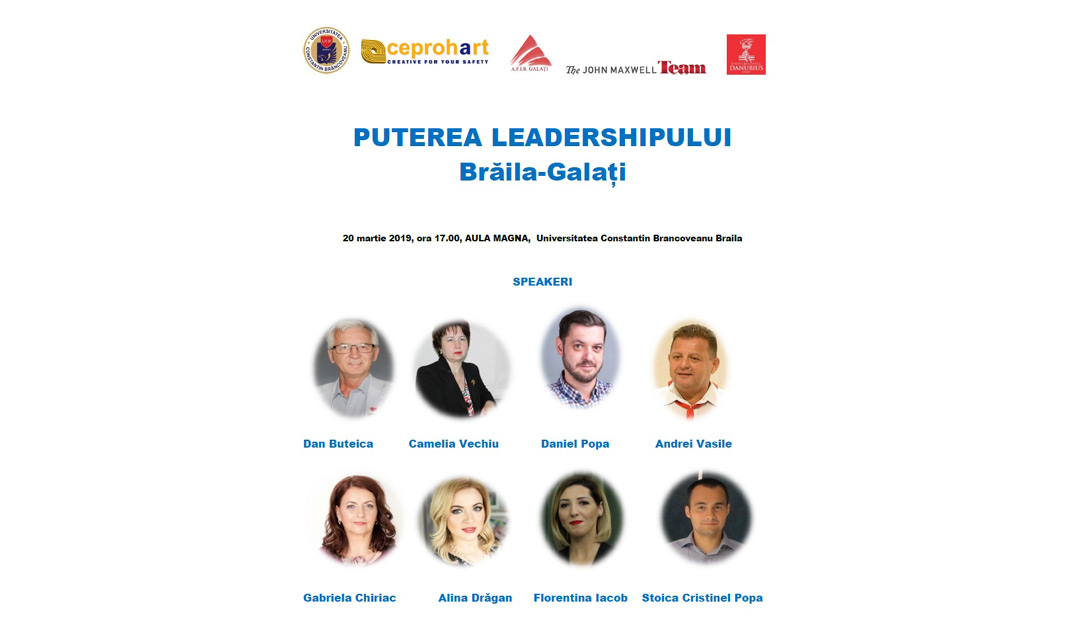 “Puterea Leadershipului Galaţi-Brăila” este un program organizat de Universitatea “Danubius” din Galaţi, Universitatea “Constantin Brâncoveanu” din Brăila, Ceprohart Brăila şi AFIR Brăila, sub egida The John Maxwell Team.