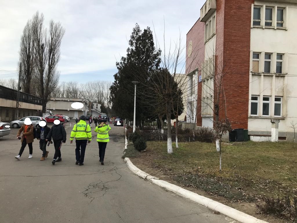 * joi, poliţiştii şi jandarmii au verificat 15 unităţi de învăţământ şi 14 agenţi de pază, aceştia fiind instruiţi cu privire la modul de asigurare a securităţii în şcoli * a fost depistat un elev care lipsea nejustificat de la orele de curs, fiind informată unitatea de învăţământ în acest sens * în plus, au fost consiliaţi alţi 7 elevi