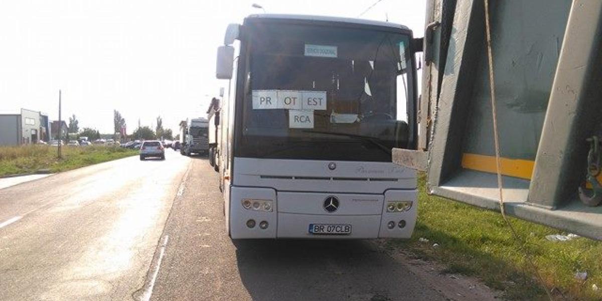 Aproape 30 de camioane, TIR-uri, autobuze și autocare, aparținând unor transportatori privați din Brăila, se află acum pe Șoseaua de Centură la intersecția cu Șoseaua Focșani și se pregătesc să plece în marș.