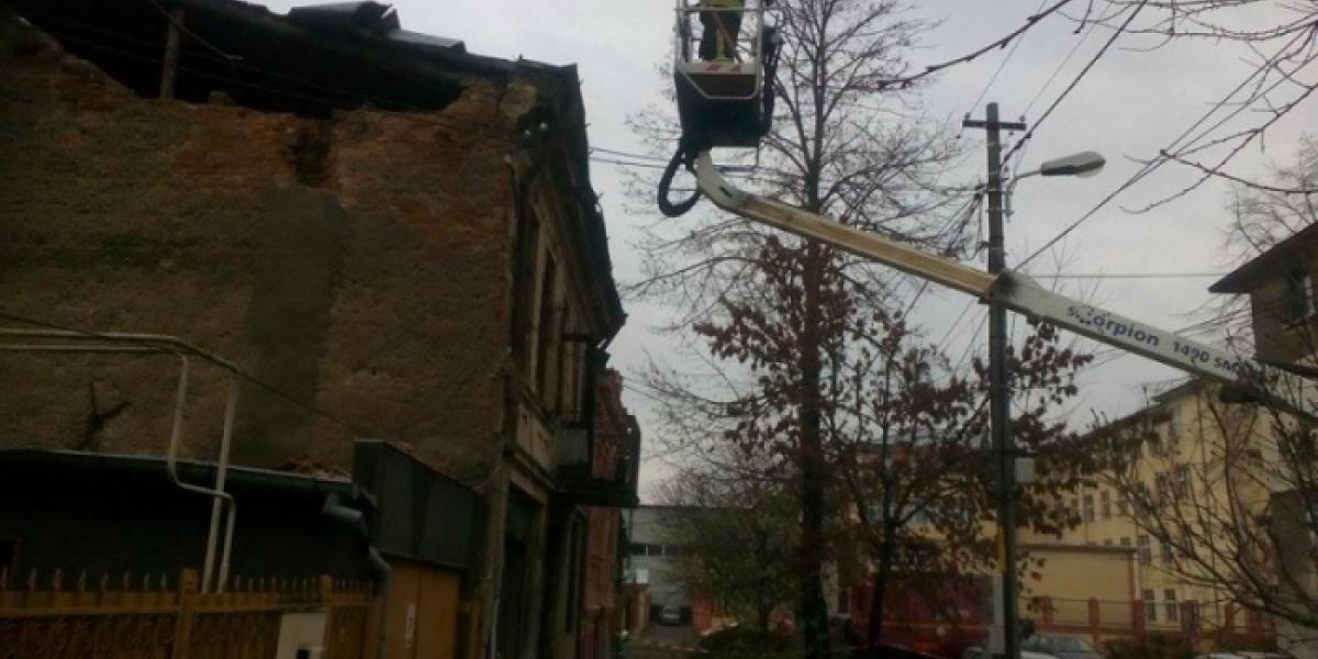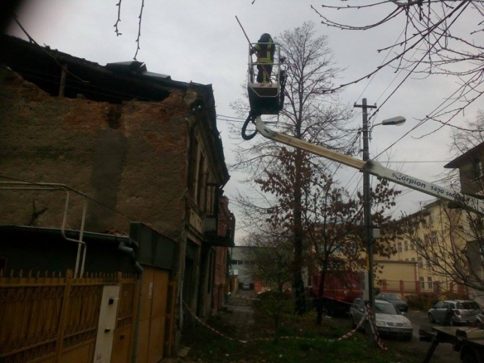 Îngrijorați, vecinii au cerut ajutorul pompierilor. În aceste momente mai mulți anhajați ISU, ajutați de o autospecială, dărâmă peretele de cărămidă până la limita de siguranță. Casa nu este locuită de mai multă vreme. Vom reveni.