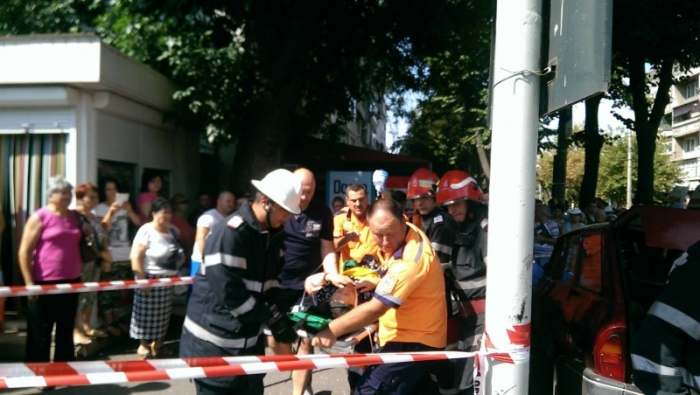 Femeia implicată în accidentul de la intersecția străzii Școlilor cu bulevardul Independenței a fost rănită grav, după ce maşina în care se afla, Dacia, a fost lovită în plin de un alt autoturism, BMW. Femeia era în mașină împreună cu soţul, care era la volan, şi o fată, aflată pe bancheta din spate. Dacia circula regulamentar, spun martorii, pe str. Şcolilor, dinnpre Calea Galaţi, când BMW-ul, care circula cu viteză pe b dul Independenţei, dinspre str. Mihai Eminescu, a intrat în plin în ei. Dacia în care se aflau cei trei pasageri s- a dat de mai multe ori peste cap şi s- a oprit pe trotuar, fiind la un pas să lovească doi pietoni. Femeia a rămas încarcerată, fiind nevoie de intervenţia pompierilor pentru a fi scoasă din maşină. A fost transportată la spital de urgenţă, în stare gravă, dar stabilă. Tânăra din spate a ajuns, de asemena, la spital. În cauza s a deschis dosar penal pentru vătămare corporală din culpă.