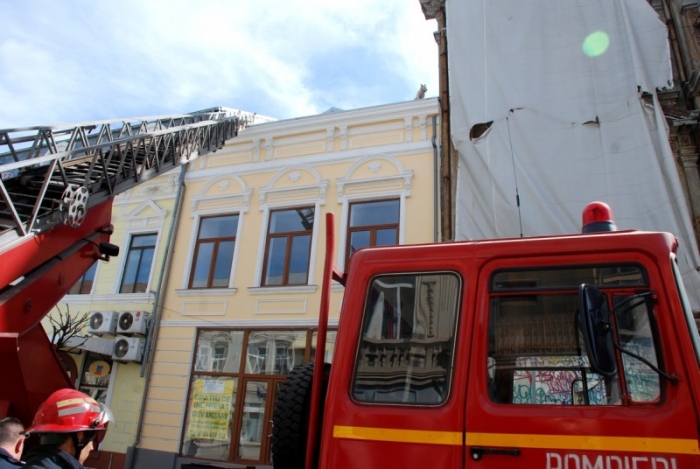 Operaţiune de salvare a unui câine "rătăcit" pe acoperişul unei clădiri de pe Str. Mihai Eminescu