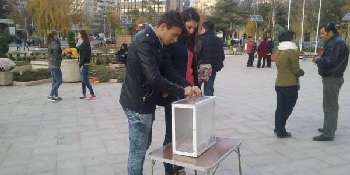 UPDATE 16.35: Incet si sigur urna a ajuns la un sfert. Un batran si-a donat o parte din pensie. In continuare brailenii vin aici, fac donatii si isi continua plimbarea