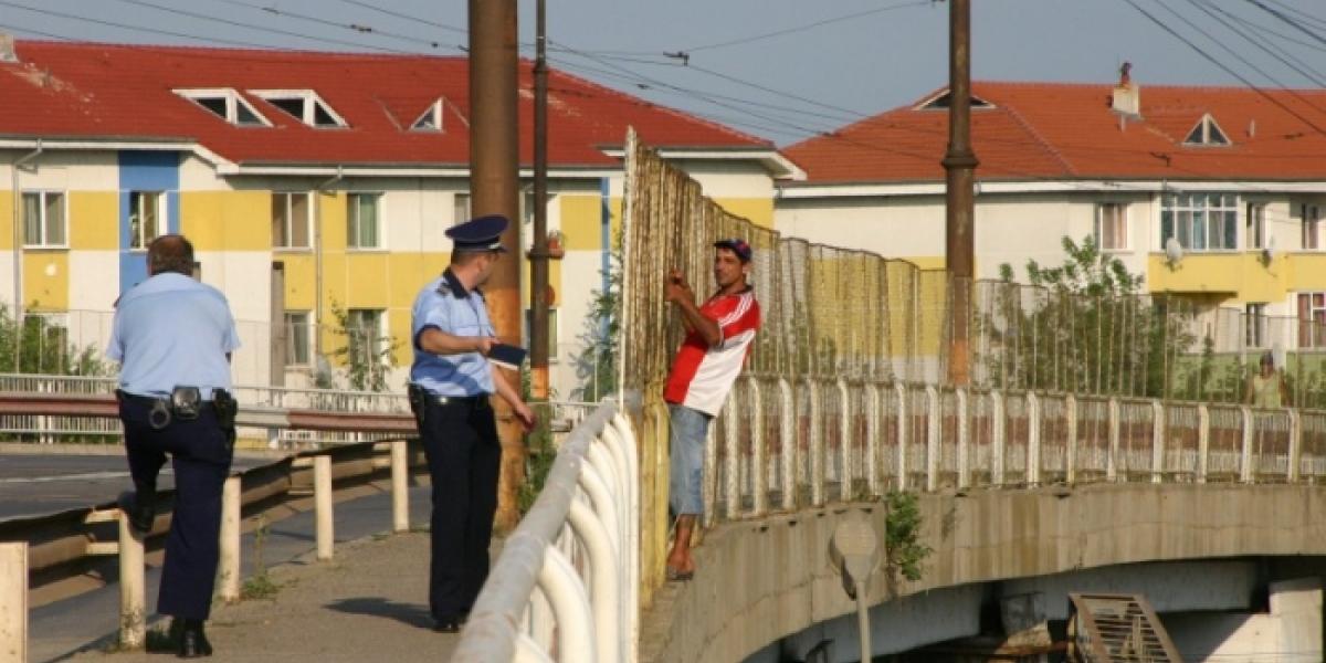 UPDATE 19. 15: Bărbatul a fost convins de fosta soție să coboare de pe balustradă.