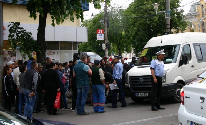 În urmă cu puţin timp, o femeie a fost lovită de un maxi-taxi, în timp ce traversa regulamentar, pe trecerea de pietoni. Din primele cercetări, poliţiştii au stabilit că şoferul microbuzului circula pe Bulevardul Cuza şi a virat dreapta, spre strada 1 Decembrie 1918, moment în care a acroşat-o.