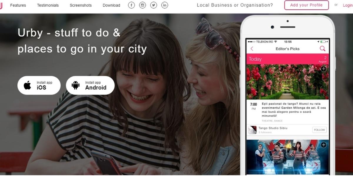 Disponibilă deja în 16 orașe, Urby este o aplicație de tip going-out, un city-guide pentru localnici, destinat oamenilor spontani, care aleg să își consume timpul în mod inteligent. Urby este însă un concept diferit de ceea ce numim ghid urban. Aplicația face o combinație între noutățile orașului venite de la diverse organizații sau business-uri locale și agenda de evenimente a orașului. În final, după ce termină de “mestecat” miile de informații din Social Media, Urby îți propune diverse sugestii cu care ți-ai putea umple timpul liber în Brăila, fie că vrei să te distrezi, să găsești locuri noi, sau să mai înveți ceva nou.