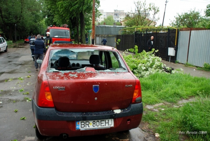 Vântul puternic a rupt azi dimineaţă, în jurul orei 10.00, o creangă dintr-un copac de pe Str. Plantelor. În cădere, aceasta a lovit un autoturism Logan care circula pe strada respectivă. A fost avariată serios partea din spate a maşinii, luneta fiind spartă şi un stâlp îndoit. În afară de sperietura aferentă, Constantin Stănică, nu s-a ales cu nicio zgârietură. Pompierii au îndpărtat creanga căzută peste maşina sa, iar acum păgubitul spune că ia în calcul să solicite despăgubiri de la Primărie. Maşina nu era asigurată Casco.
