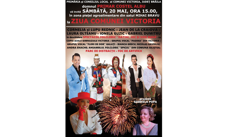 Cum care Jean, inculților?! Jean de la Craiova, care Jean vine, sâmbătă, 20 mai, aicișea, la Victoria, invitat de nimeni altul, decât de Costică Albu, primarul. Ocazia? Ziua comunei Victoria, doar nu credeați că l-a chemat pe vestitul Jean, să vină să-i cânte la ureche pe bani publici de ziua onomastică. Ne referim la nea Costică, primarul de la Victoria, care sigur dă și el un șpriț de Sf Constantin și Elena. În fine, dar nu e singura vedetă care vine la Victoria la acest sfârșit de săptămână și care chiar vă pupă, de-adevăratelea, într-un clip filmat, în exclusivitate, pentru comuna Victoria! Dai un ban, dar stai în față! Vine și Cornelia & Lupu Rednic, bașca nelipsitul foc de artificii și-un tradițional parc de distracții, toate astea în satuuuuul Mihai Bravu, doamnelor și domnilor, începând cu ora 15.00. Dar stați așa, că nu este singura surpriză din județul nostru la acest sfârșit de săptămână. Duminică, chiar de Sf. Constantin și Elena, nea Costică Dobre, primarul de la Șuțești, doamnelor și domnilor, face petrecere mare, cu, atențieeeee!, Conect-R, cap de afiș, dar și Gore Belanschi, Ciro de Luca &Nadia Drăgan ș.a. pluuuuus, nelipsitul foc de artificii. Cică-s ”Zilele comunei Șuțești”! Pfaaaaai, și noi care credeam că-n municipiu e bătălia peștelui și când colo, adevărații rechini sunt la țară! Acolo, cred ei, nu-i vede și nu-i aude nimeni, decât cine trebuie să pună ștampila la momentul oportun. Și noi, care-i credeam rupți în cur, cu un buget sărăcăcios, cerșind la ușa marelui Francisk Întâiul, de la Consiliul Județean! Cel puțin așa se plâng! Că n-au nici după ce bea apă! Ăștia doi Costici sunt pesediști, dar liberalii de la țară, oare când o fac și ei lată? Nu de alta, dar poate că ne invită și pe noi, că de Opoziție – la consilierii comunali liberali, ne referim - nici nu poate fi vorba. Niște țărani! (Bogdan de la Ploiești)
