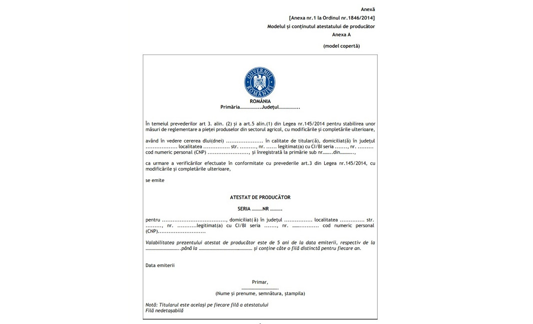 Documentul este gândit să aducă unele simplificări pentru fermieri: “Atestatul de producător conţine cinci file, câte o filă distinctă pentru fiecare an, se completează anual cu datele din registrul agricol şi se vizează prin aplicarea ştampilei şi a semnăturii primarului comunei, oraşului, municipiului, sectorului municipiului Bucureşti, după caz. Filele distincte completate trebuie să se încadreze în perioada de valabilitate a atestatului de producător”, prevede proiectul de ordin.