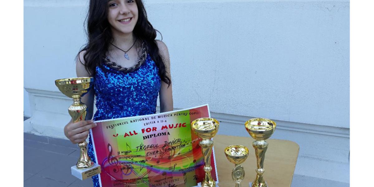 “Festivalul s-a dorit a fi un spectacol şi toţi copiii care au evoluat au primit diplome, trofee şi cadouri. O evoluţie de excepţie pe scena Festivalului All for music a avut-o interpreta Valentina Enea din Brăila. Ea a participat la trei secţiuni: Pop românesc şi Pop internaţional, unde a câştigat câte un Trofeu al categoriei şi Etno, unde a câştigat Trofeul Junior, al doilea trofeu al festivalului, ca importanţă. Juriul a fost impresionat de vocea caldă, de calităţile interpretative, dar şi de tehnica vocală fără cusur dobandită la clasa doamnei profesor Liliana Toader din Brăila. Sunt fericită că Festivalul All for music a adus bucurie copiilor, în prag de vacanţă”, ne-a declarat compozitorul Gabriela Sauciuc Cicone, directorul festivalului.