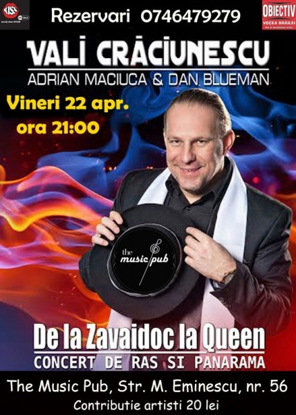 Binecunoscutul artist român Vali Crăciunescu va susţine în această seară un concert "exploziv" pe scena The Music Pub din Brăila.