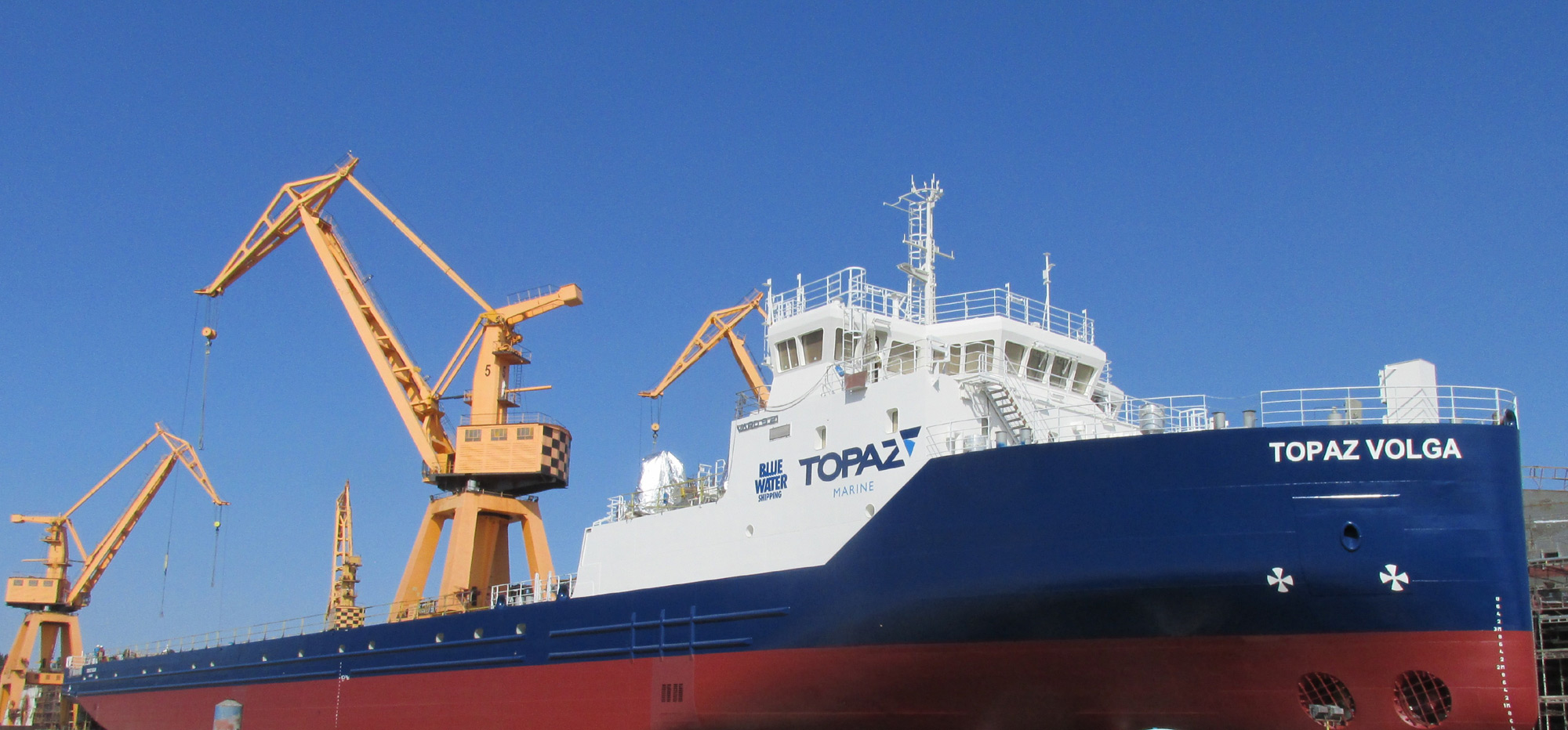 Al treilea moment festiv în mai puţin de o săptămână pe platforma şantierului naval “VARD Brăila”, după dubla ceremonie de botez a navelor gemene “Topaz Neva” şi “Topaz Lena” de acum câteva zile (miercuri, 25 aprilie), şi lansarea la apă de joi, 26 aprilie, a unei nave de tip “live fish carrier”. Sâmbătă, 28 aprilie, navaliştii brăileni au programată lansarea la apă a unei noi nave din seria Topaz MCV, având aceleaşi caracteristici tehnice ca surorile “Neva” şi “Lena”: lungime de 123 m, lăţime de 16,5 m şi un pescaj maxim de 3 m, fiind destinată navigării atât în ape interioare cât şi maritime ca transportor de module preasamblate, asigurând condiţii standard de locuire pentru un echipaj format din 18 persoane. Sistemul de propulsie (câte 3 generatoare diesel de 940 kW fiecare, plus două motoare laterale cu o putere de 1.200 kW fiecare) îi va asigura o viteză de 10 noduri şi manevrabilitate ridicată. Construcţia “Topaz Volga” face parte dintr-o comandă mai mare preluată la nivelul grupului “VARD”, din partea “Topaz Energy and Marine” şi partenerilor acesteia, companiile “Blue Water Shipping” şi “Tengizcherroil”, şi a început în septembrie 2016, când a avut loc ceremonia de debitare a primei table de oţel din această comandă. În total, grupul norvegian “VARD” s-a angajat să le livreze celor de la “Topaz Energy and Marine” şi partenerilor ei 18 nave, dintre care mai mult de jumătate au fost repartizate pentru a fi construite şantierului naval de la Brăila.