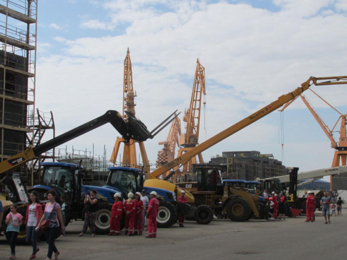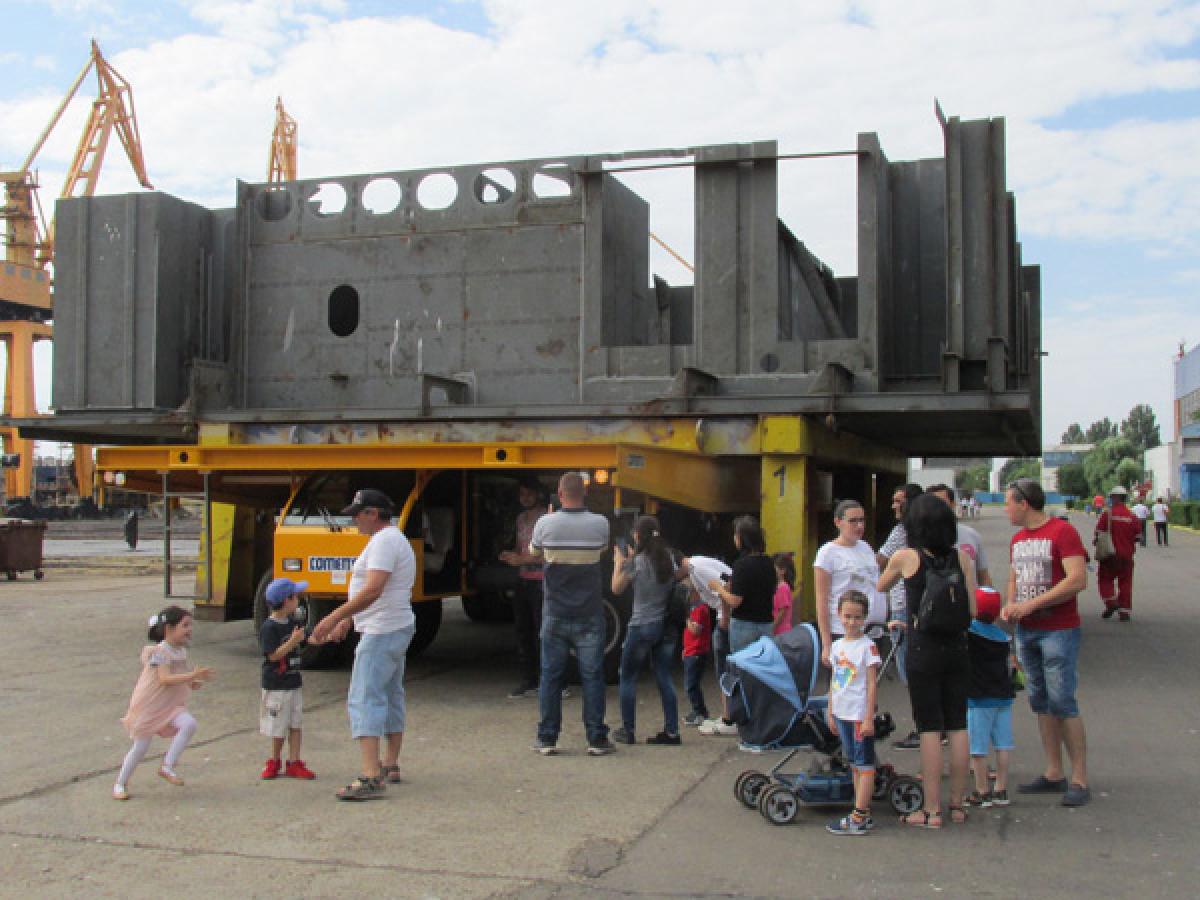Au constituit puncte de mare atracţie platforma autoridicătoare de 150 de tone pentru transportul bloc-secţiilor de navă, automacaraua de 35 de tone, încărcătorul frontal, skyworker-ul şi noua maşină de pompieri a şantierului. Copiii s-au urcat pe utilaje, s-au fotografiat şi au urmărit demonstraţii cu manevrare a utilajelor.
